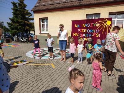 W ogrodzie naszego przedszkola w dniu 26 lipca odbył się Letni Piknik. Z zaproszenia skorzystało bardzo wiele rodzin, aby miło i przyjemnie spędzić poniedziałkowe dopołudnie. Dla milusińskich przygotowano mnóstwo atrakcji: malowanie twarzy i paznokci,loterię, zakręcone baloniki, spotkanie ze strażakami i ich wozem. Chętni mogli skorzystać ze sprzętu na placu zabaw oraz z oferty Teatru „Bajkowe Skarbki Śląska” . O oprawę muzyczną zadbały panie, które przygotowały wiele ciekawych zabaw, pląsów i konkursów. Chętnych do udziału nie brakowało i to zarówno młodszych, jak i starszych. Wszystkim dopisywał nie tylko humor, a także przede wszystkim radość ze wspólnego świętowania . W piknikowej kawiarence można było skosztować pysznych wypieków, przygotowanych przez rodziców( za które serdecznie dziękujemy) oraz posilić się kiełbaską z grilla. Słoneczna( nader łaskawa dla nas pogoda) sprzyjała wypoczynkowi, rozmowom i zabawom, dlatego też niechętnie rozchodzono się do domów.