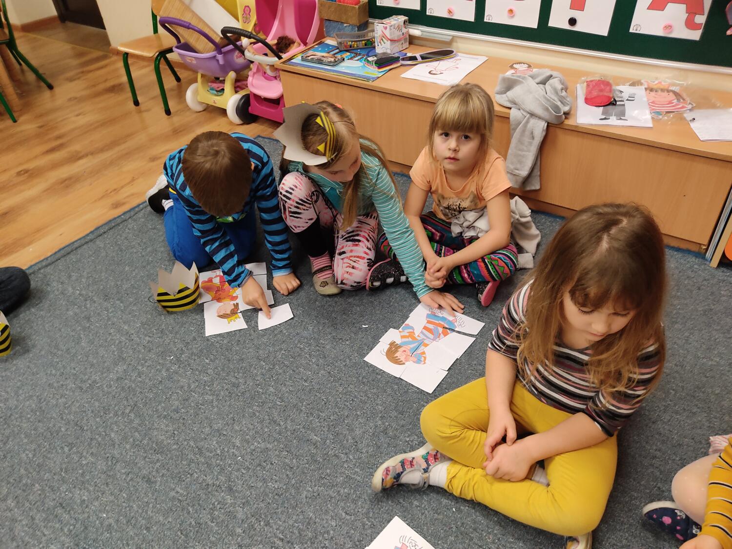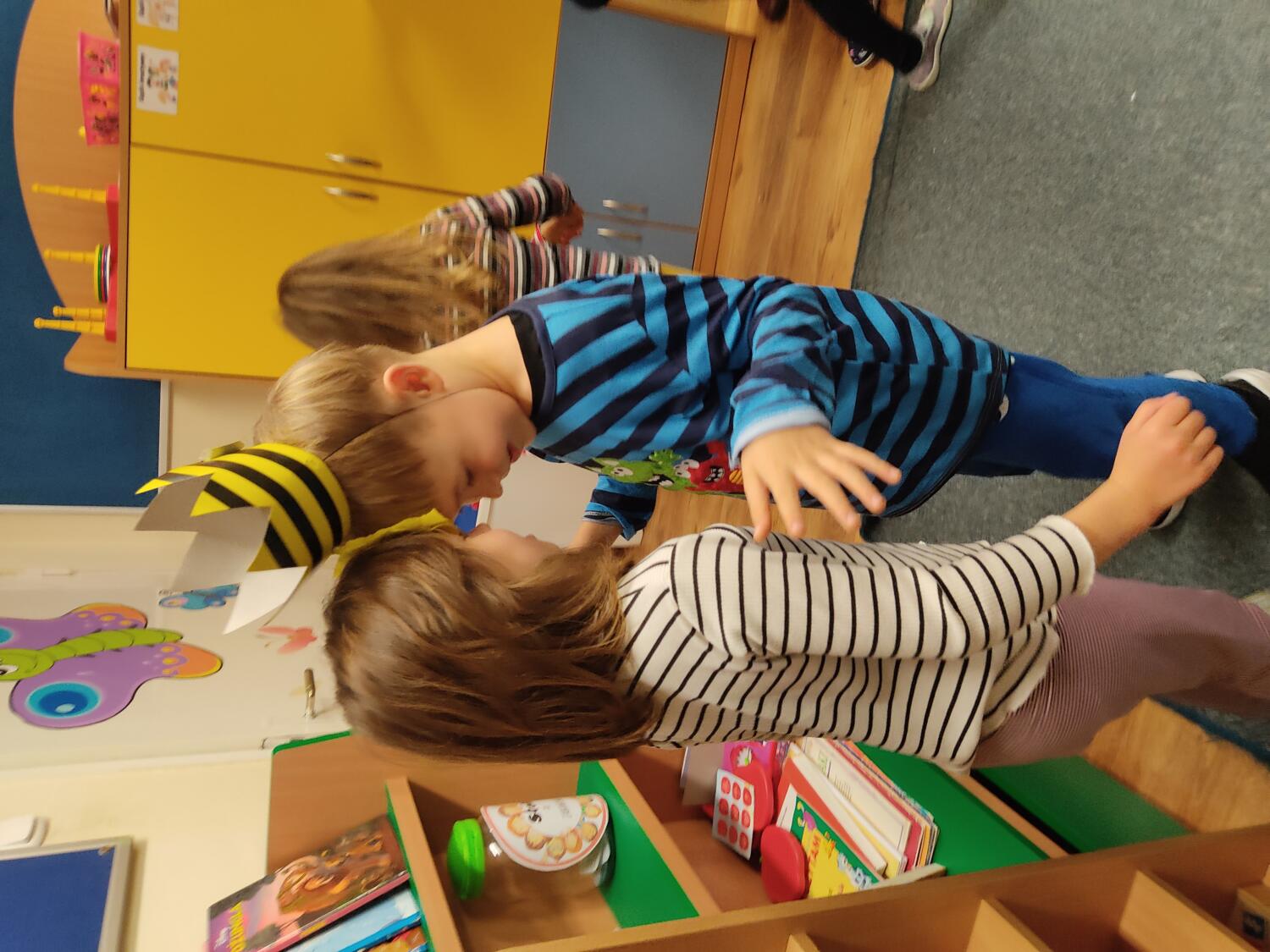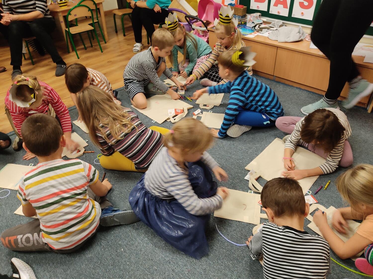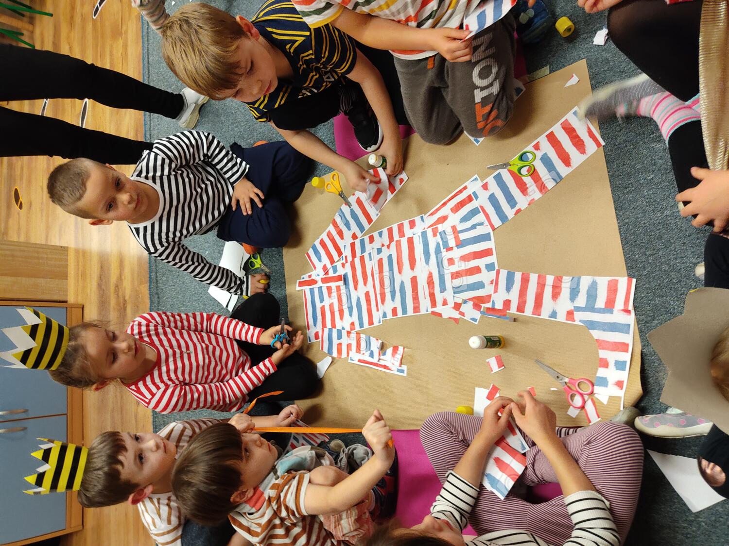 Na nockę czekaliśmy z wielkim napięciem. W ten piątkowy wieczór i noc tj. 19.11/20.11.21r spotkanie z Basią się dokonało. Pamiętaliśmy wszyscy by towarzyszyć Basi przyozdobieni w jej ulubione paski, nikt nie zapomniał zabrać z domu paskowych kreacji- zresztą nie skończyło się tylko na paskowej garderobie, czegóż nie było w paski- śpiwory, serwetki, kubeczki, paskowy wybieg i przede wszystkim paskowy tort Basi. Zanim jednak było tradycyjne 100lat dla naszej literackiej solenizantki, to wcześniej każdy z wielką odwagą w sercu przeszedł po wybiegu witając się z Basią, bawiliśmy się w kreatorów paskowej mody- tworząc niepowtarzalne kreacje , dmuchaliśmy kuleczki by udekorować strój Janka i Basi, a jeszcze i potem był wielki konkurs „Jaka jest Basia”- wszyscy okazali się znawcami Basi- dlatego też każdy otrzymał koronę i upominki od Basi w postaci neonowej biżuterii, fascynującej torby na żelki, a i same żelki odszukaliśmy w plenerach przedszkolnych sal po mega ekscytujących zawodach sportowych . Nocny pokaz i zarazem premiera filmu z Basią i czytanie fragmentu książki okazały się ostatnim punktem zabaw. Udaliśmy się do naszej przedszkolnej sypialni i hop do cieplutkich śpiworków. Tak od razu nie zasnęliśmy- były pogaduchy do poduchy i mocne postanowienie – że tej nocy nikt nie zaśnie. To było tak około drugiej nad ranem,…jednak Orfeusz zadbał o nas i zaczarował nas snem. Jakież było nasze zdziwienie rankiem , gdy zerkaliśmy na siebie i zobaczyliśmy pasiaste paseczki na naszych buziach. Mega zadowoleni budziliśmy się , cieszyliśmy się tym , co przeżyliśmy nocą. Ciepłe śniadanko i już tylko czekanie na rodziców uzmysłowiło nam ,że ta przygoda definitywnie dobiegła końca. Dziękujemy Basi za tak cudowną nockę i na pewno o Basi nigdy nie zapomnimy.