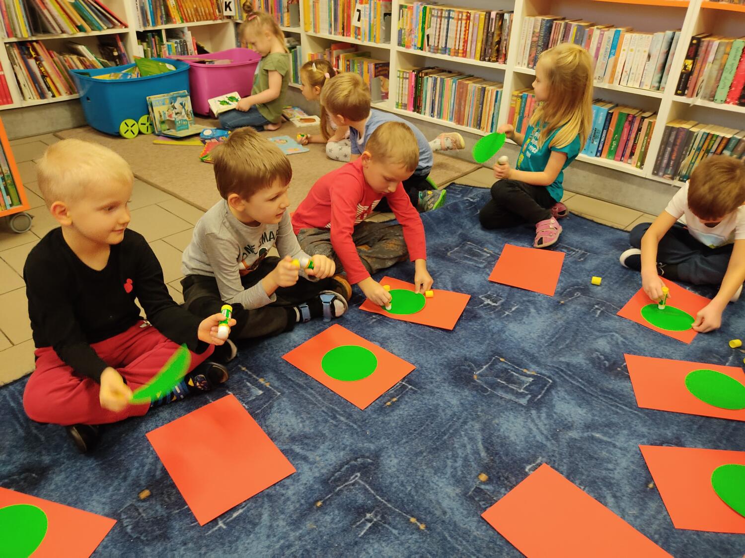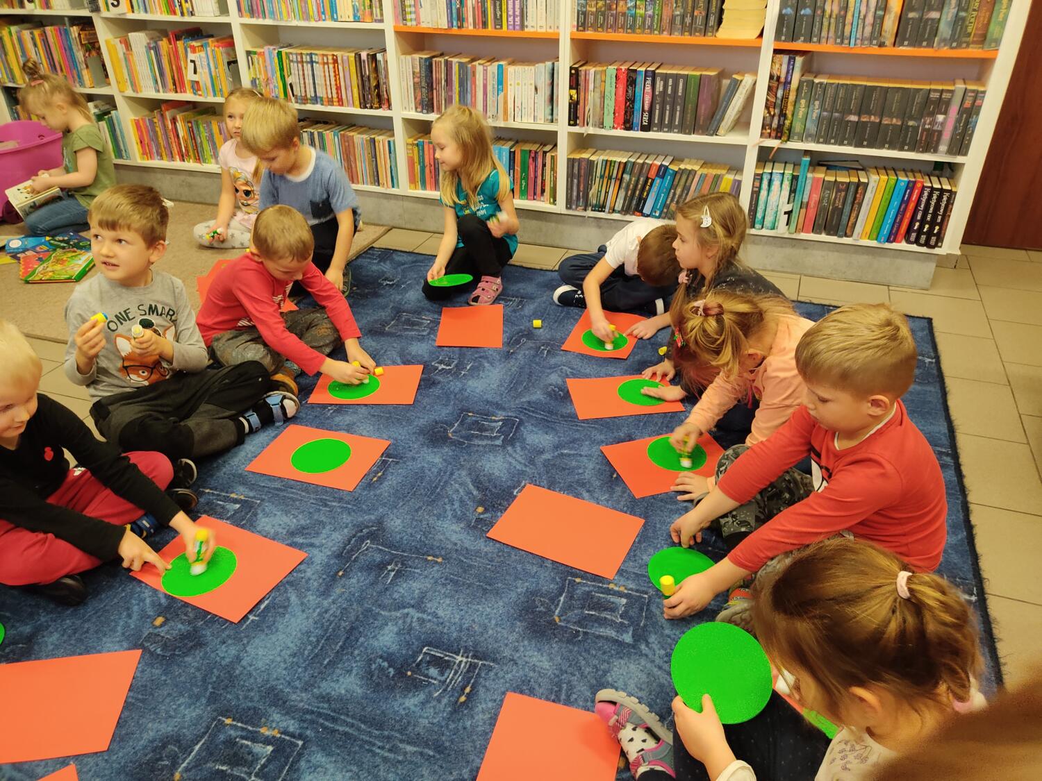 Tropiciele w środowe popołudnie uczestniczyły w pierwszym cyklicznym spotkaniu „Bajkowe kolory emocji”- na początek zagościł w bibliotece „Żabkowy smuteczek”- to nie tylko było przeczytanie przez Panią Ewę pięknej książki, tropiciele próbowały na bardzo wiele sposobów rozweselić smutną żabkę, z wykorzystaniem techniki origami stworzyli inną zupełnie żabkę, a potem już w sali z wykorzystaniem kredek smuteczek zmieniał barwy- przy okazji dzieci dowiedziały się jak produkuje się kredki i sami doświadczali poznając różne rodzaje kredek. Kolorowe kredki- to na pewno świetny pomysł na niejeden smutek i smuteczek.