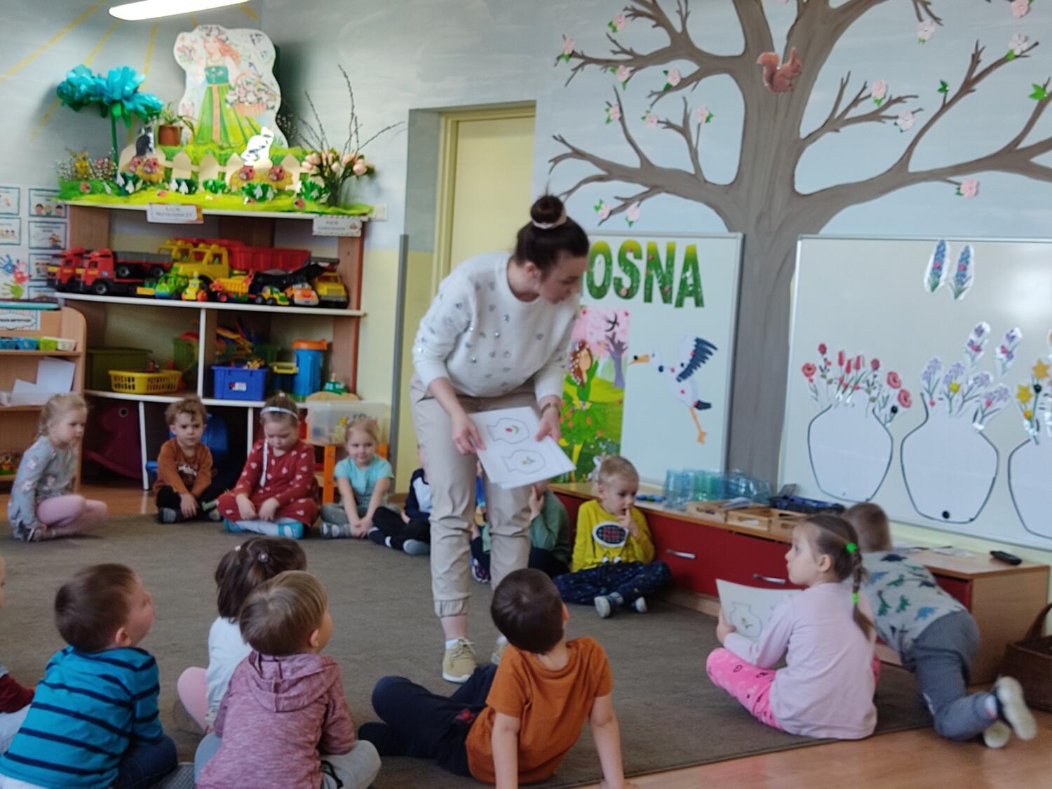 W każdej z grup wiosna na dobre się zagościła. Pięknie są wystrojone sale w dekoracje wiosenne, także przedszkolacy trochę jakby bardziej radośniejsi i z wielkim oczekiwaniem czekają na niejedną wiosenną przygodę. Działania dzieci w ramach organizowanych zajęć realizacji podstawy programowej z niebywałym entuzjazmem i ochotą uczestniczą w przygotowanych propozycjach zabaw przez wychowawców grup. Takie zajęcia miały miejsce w ubiegłym tygodniu w naszym przedszkolu. Na załączonych zdjęciach- mała dawka wiosennych inspiracji w młodszych grupach.
