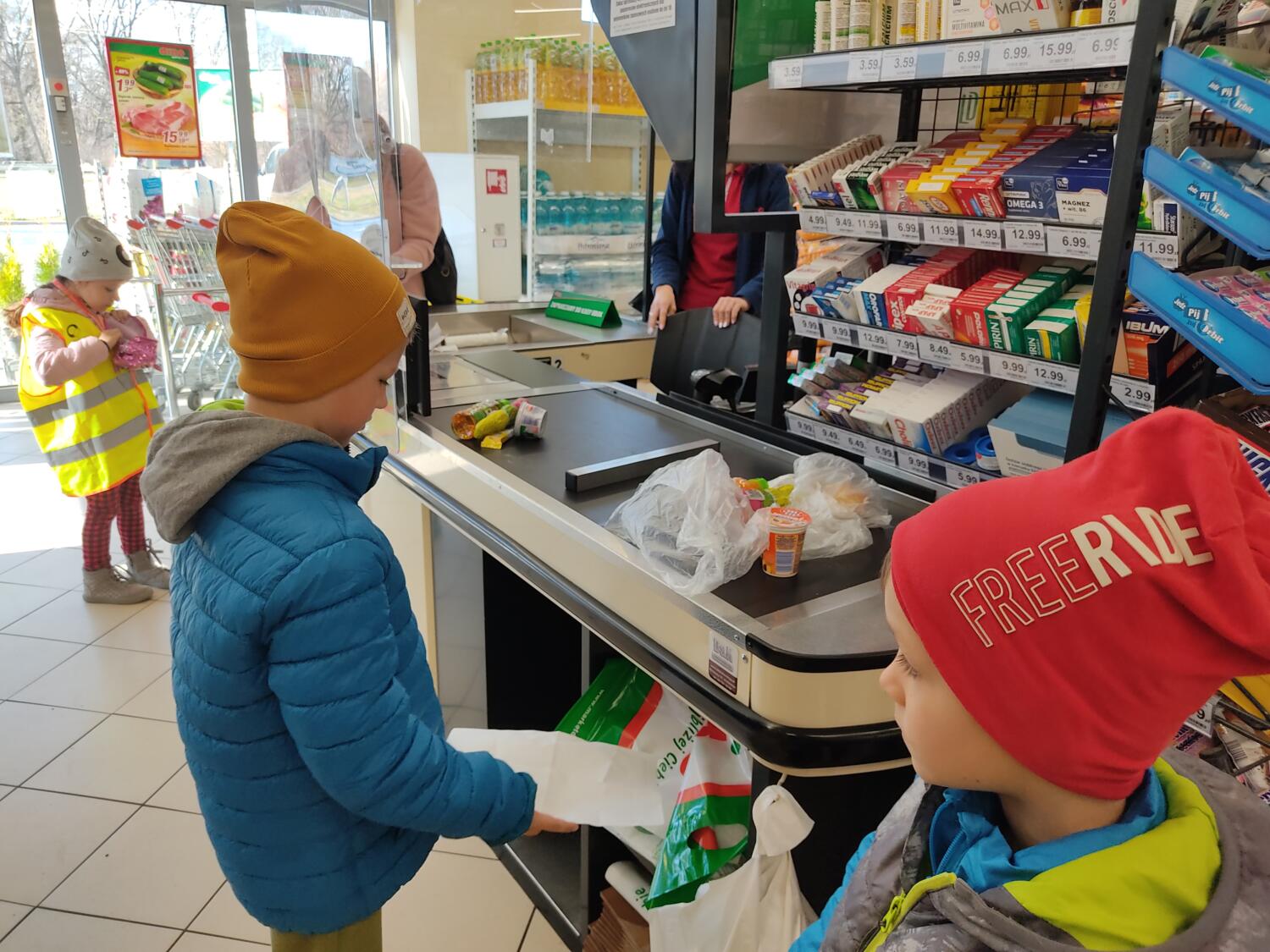 Zakupy nie tylko udało nam się zakupić zgodnie z otrzymaną fiszką zadaniową, dla wszystkich była to wielka lekcja samodzielności w robieniu zakupów. Wszyscy obecni bystrzacy zmieścili się w kwocie 10 złotych- a pokus  na półkach sklepowych nie brakowało, my jednak zgodnie z planem zrobiliśmy tak , jak podpowiadała nam nasza lista zakupów.Liczymy,że robienie zakupów w ten sposób znalazło wielu zwolenników wśród bystrzaków.Brawo, jesteśmy z was dumne.