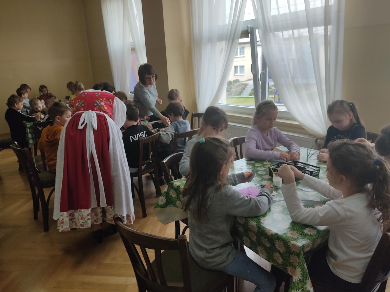 Uczestnikami wycieczki w dniu 30.03.22r były najstarsze przedszkolaki.Stęsknieni przygód turystycznych wyruszyliśmy punktualnie autokarem PKS do Centrum Regionalnego w Żorach.Już na miejscu zaoferowano nam warsztaty połączone z pokazem teatralnym i pracami plastycznymi dotyczącymi zbliżających się świąt Wielkanocnych.Gospodarze zadbali o atrakcje ,a my z wielką przyjemnością w nich uczestniczyliśmy.Na pamiątkę pobytu w Żorach- Osinach każdy uczestnik otrzymał nagrodę w postaci książeczki. Mamy nadzieję , że dzięki wycieczce przybliżyliśmy troszkę tradycje świąteczne.