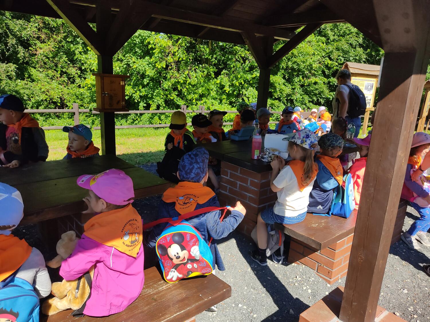 Wszyscy uczestnicy wycieczki do Starej Kuźni w Nadleśnictwie Kędzierzyn- Koźle wrócili zadowoleni i oddani w bezpieczne ręce rodziców i opiekunów. Pogoda nie sprawiła nam żadnego figla- zarówno ścieżka przyrodnicza z leśnikiem , seans filmowy , prezentacja zwierzątek w izbie ekspozycyjnej wzbudziła w Nas zaciekawienie i zachwyt. A potem jeszcze autokarami udaliśmy się do Stampnicy- i piknikowo, rozrywkowo bawiliśmy się w plenerze. A pieczone kiełbaski ze smakiem większym lub mniejszym zjedliśmy w otoczeniu śpiewu ptaków. Dziękujemy uczestnikom wycieczki za zadowolone i uśmiechnięte buzie, rodzicom za pomoc w wycieczce.