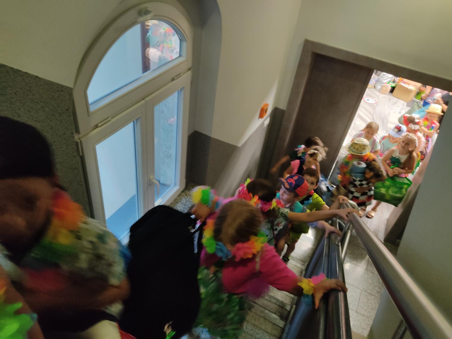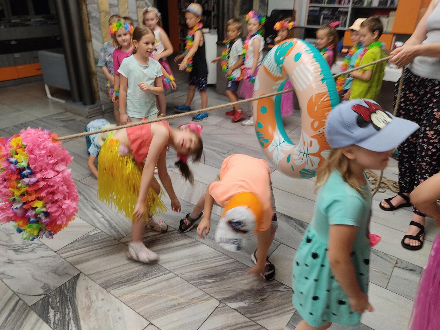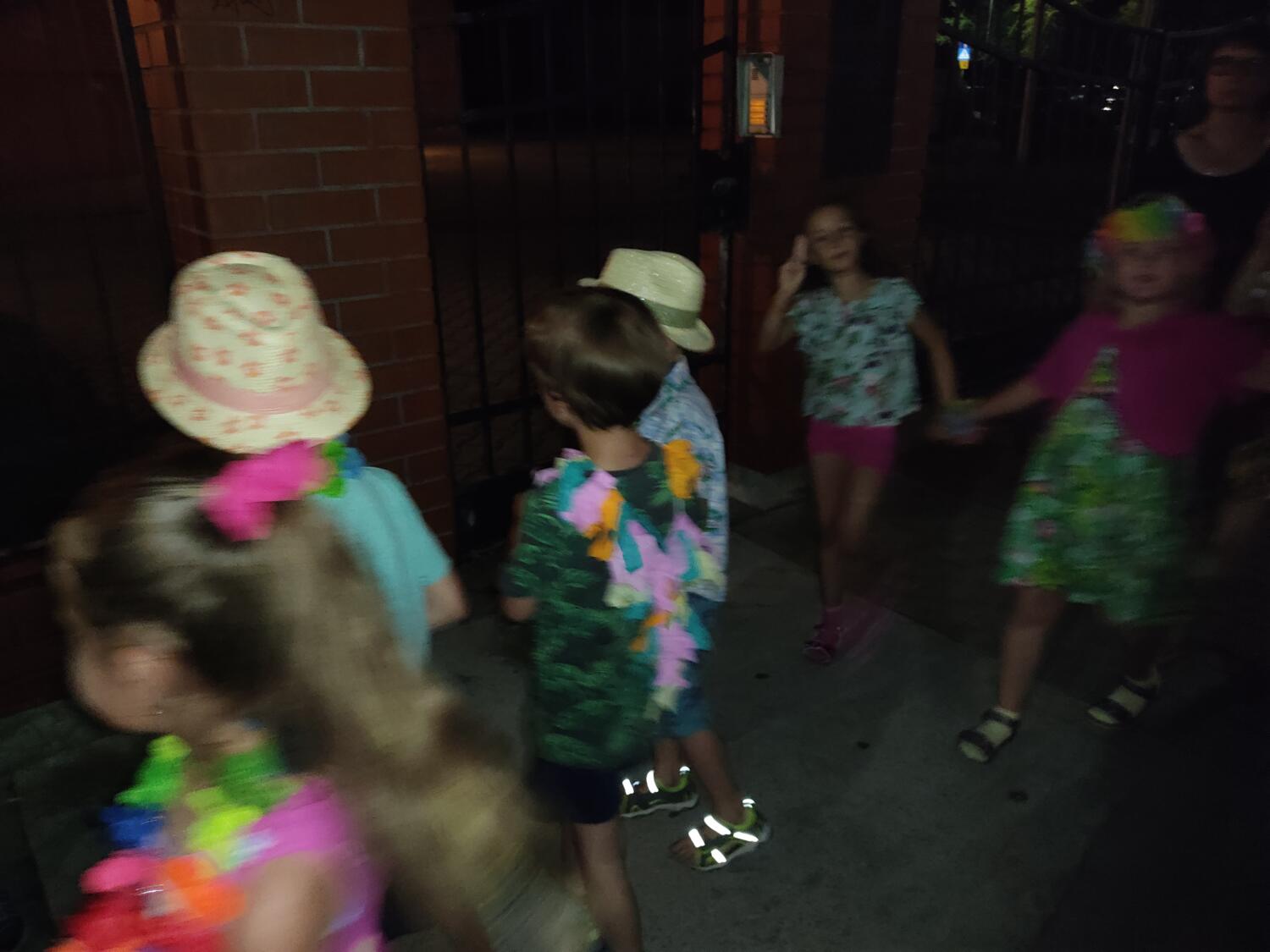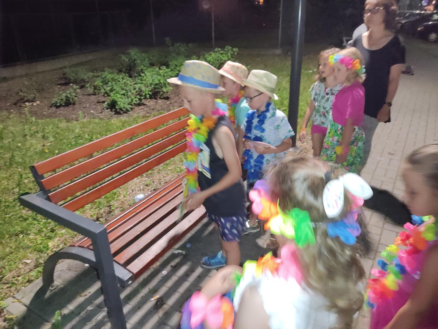 Każdy marzy o wakacjach w tropikach. Udało się spełnić marzenia bystrzaków w ostatni dzień roku szkolnego. Wielobarwne spódniczki i kwiatowe girlandy, kolorowe kapelusze, ubrane przez dzieci, hawajskie rytmy sprawiły, że przedszkolaki szybko poczuły hawajski klimat.Dzieciaki wyruszyły w podróż zabierając niezbędny ekwipunek, jednak na granicy USA przetrzepano naszym podróżnym niejedną torbę i plecak. A i Panie u celników nie miały łatwo, paszporty w końcu zostały podbite i udaliśmy się do hotelu czterogwiazdkowego”NOCKOWANIE. To był jednak dopiero początek pobytu na Hawajach, krętymi zakamarkami zwiedzaliśmy wyspę, by poznać ciekawostki wyspy i biblioteki, doskonale poradziliśmy sobie również z tańcem „hula”, w którym chodzi przede wszystkim o poruszanie biodrami.Uczestnicy zabawy oddali się degustacji pysznych egzotycznych owoców , rozpoznawaliśmy owoce za pomocą zmysłów smaku i dotyku.Były tropikalne konkursy plastyczne- wykonaliśmy biżuterię dla mamusi, lemoniadę na tropikalne upały, kolorową papugę, odczarowaliśmy ducha wulkanu, odbyły się mega zawody z przeszkodami, nie zabrakło bardzo późnych podchodów z papugami , zabaw przy muzyce hawajskiej. Nasze spanko miało swój chyba początek o godzinie 3.20 po seansie kinowym, a rankiem z apetytem, upominkami i dyplomem pamiątkowym oddaliśmy się w wytęsknione ręce rodziców.