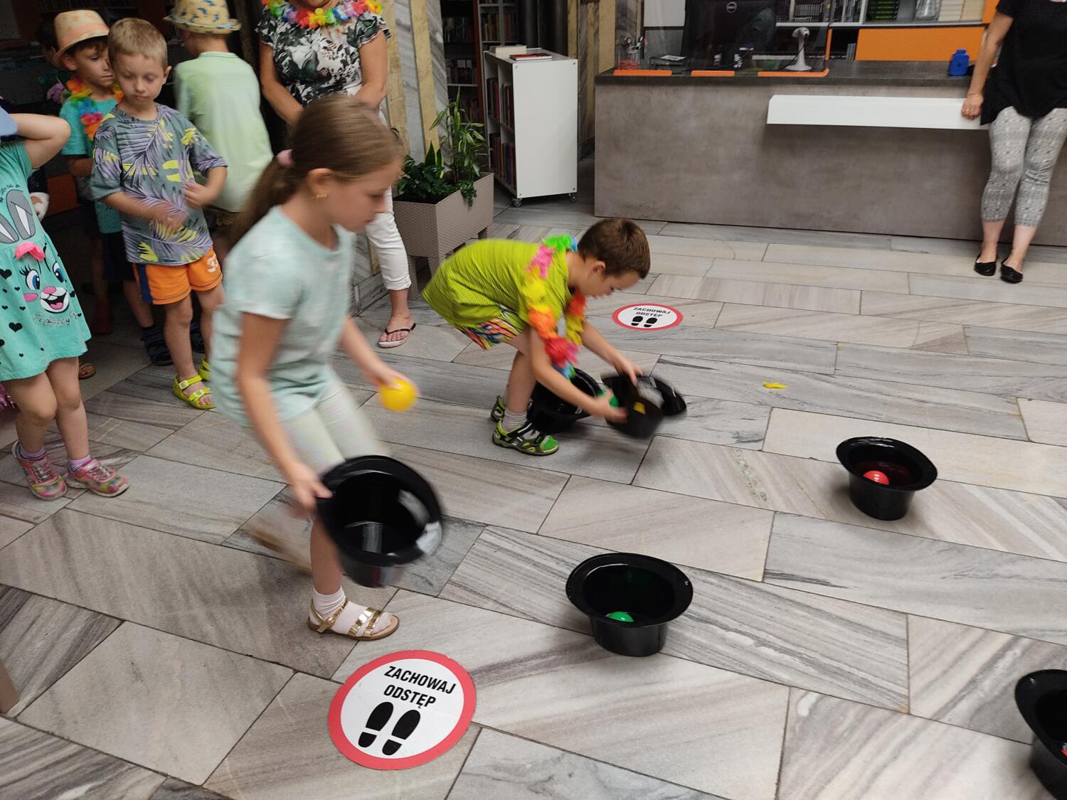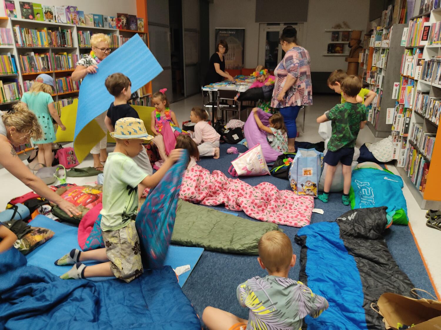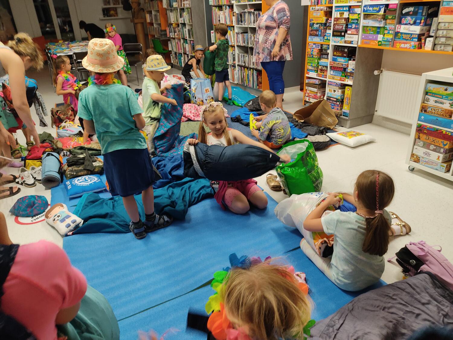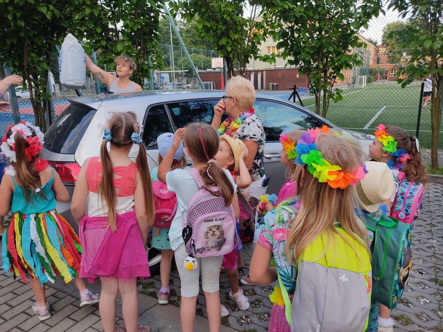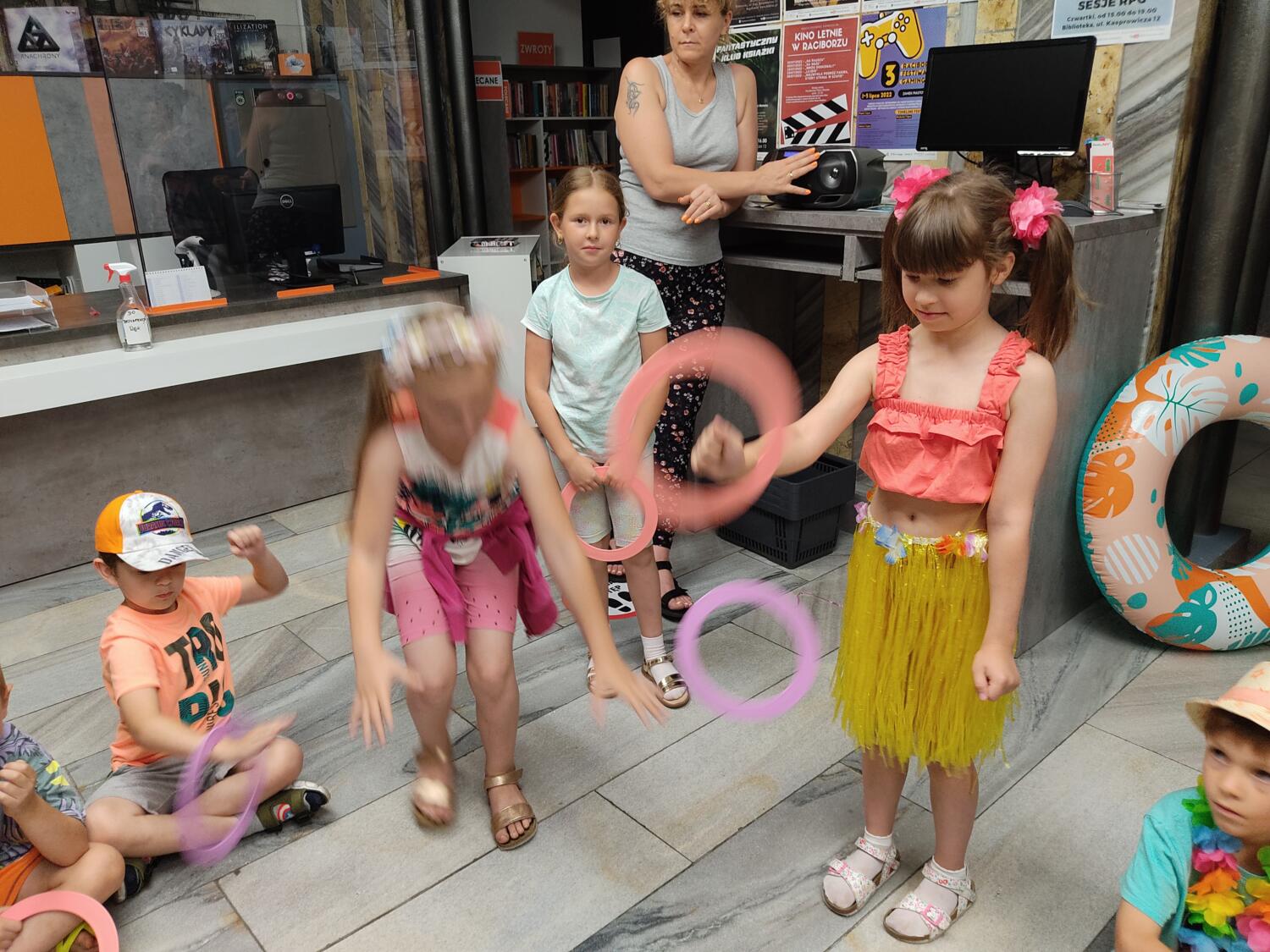 Każdy marzy o wakacjach w tropikach. Udało się spełnić marzenia bystrzaków w ostatni dzień roku szkolnego. Wielobarwne spódniczki i kwiatowe girlandy, kolorowe kapelusze, ubrane przez dzieci, hawajskie rytmy sprawiły, że przedszkolaki szybko poczuły hawajski klimat.Dzieciaki wyruszyły w podróż zabierając niezbędny ekwipunek, jednak na granicy USA przetrzepano naszym podróżnym niejedną torbę i plecak. A i Panie u celników nie miały łatwo, paszporty w końcu zostały podbite i udaliśmy się do hotelu czterogwiazdkowego”NOCKOWANIE. To był jednak dopiero początek pobytu na Hawajach, krętymi zakamarkami zwiedzaliśmy wyspę, by poznać ciekawostki wyspy i biblioteki, doskonale poradziliśmy sobie również z tańcem „hula”, w którym chodzi przede wszystkim o poruszanie biodrami.Uczestnicy zabawy oddali się degustacji pysznych egzotycznych owoców , rozpoznawaliśmy owoce za pomocą zmysłów smaku i dotyku.Były tropikalne konkursy plastyczne- wykonaliśmy biżuterię dla mamusi, lemoniadę na tropikalne upały, kolorową papugę, odczarowaliśmy ducha wulkanu, odbyły się mega zawody z przeszkodami, nie zabrakło bardzo późnych podchodów z papugami , zabaw przy muzyce hawajskiej. Nasze spanko miało swój chyba początek o godzinie 3.20 po seansie kinowym, a rankiem z apetytem, upominkami i dyplomem pamiątkowym oddaliśmy się w wytęsknione ręce rodziców.