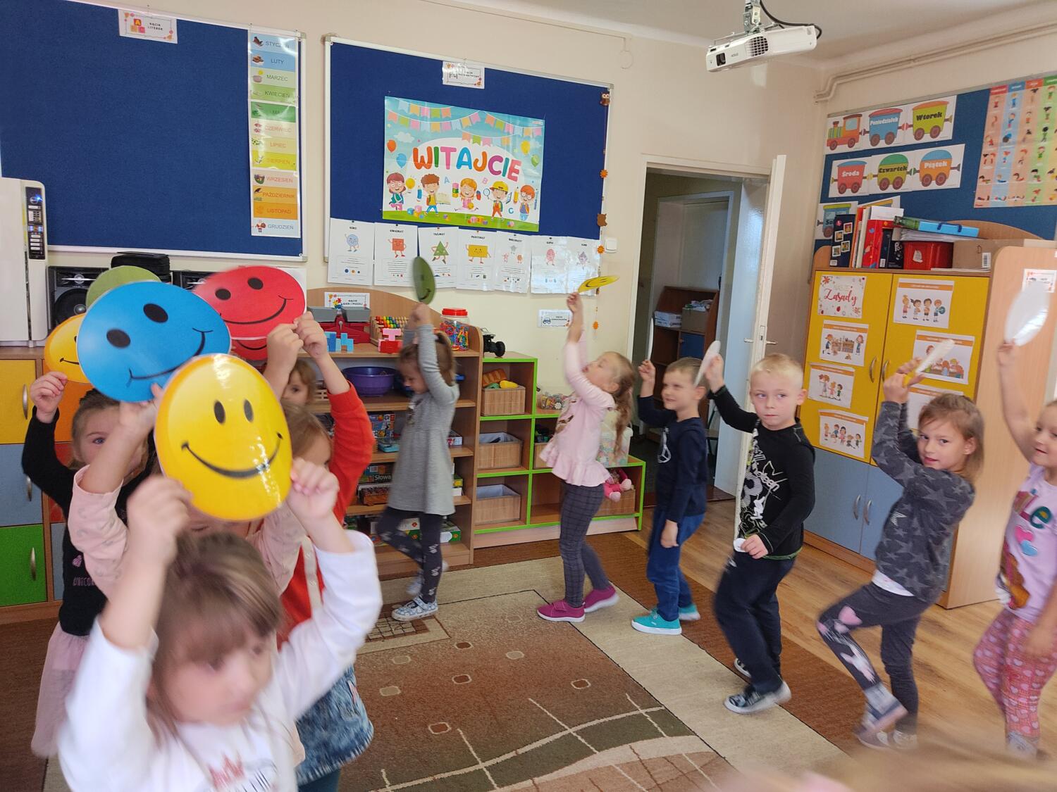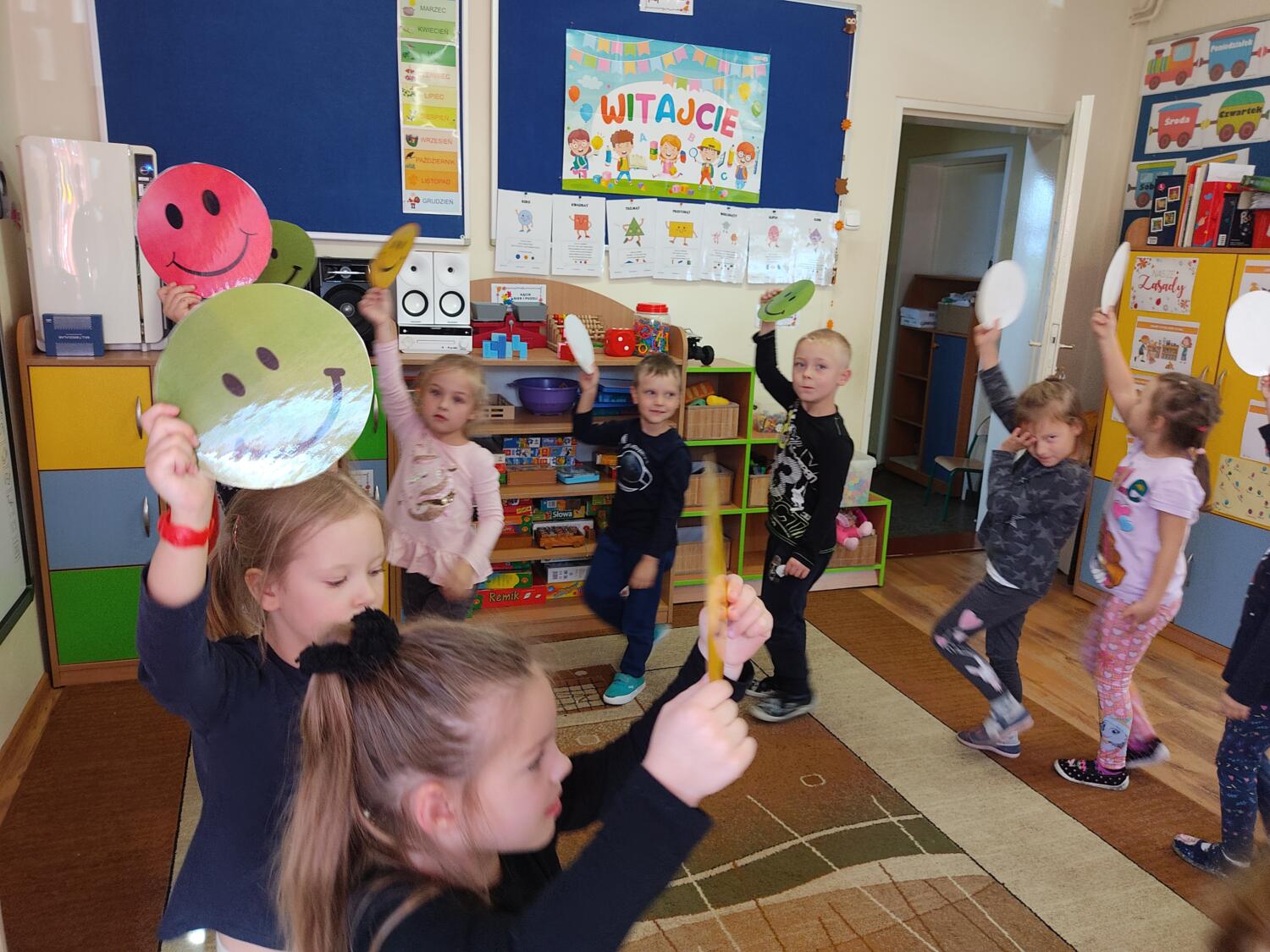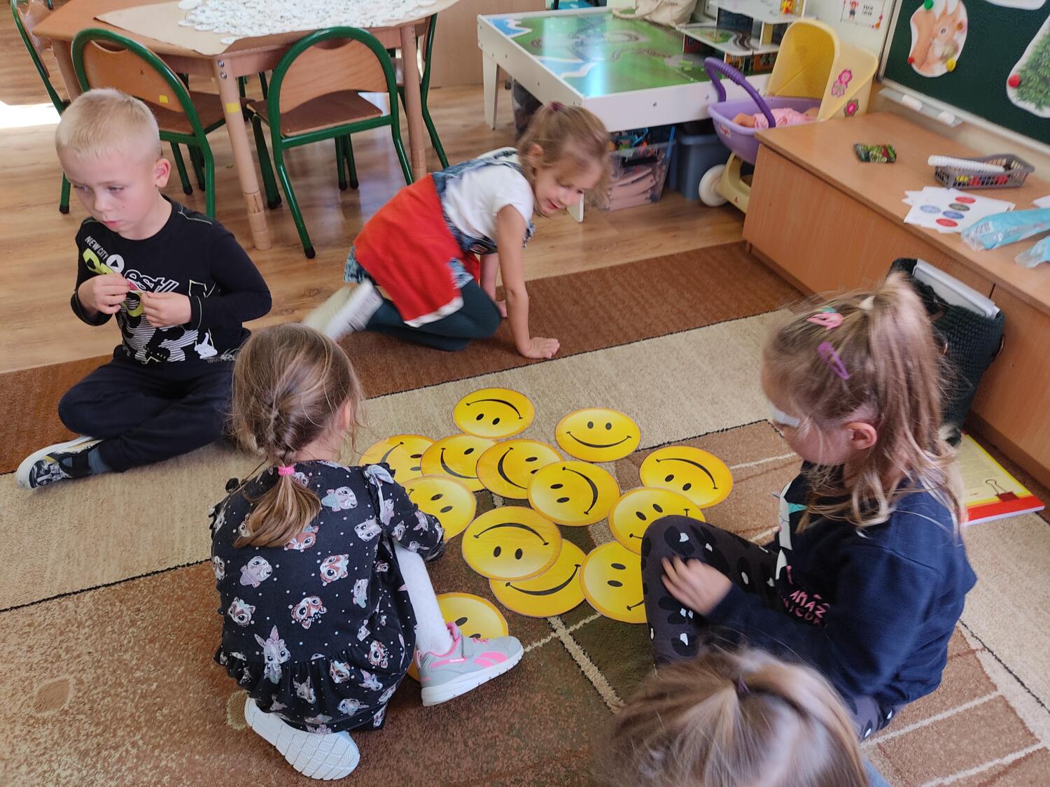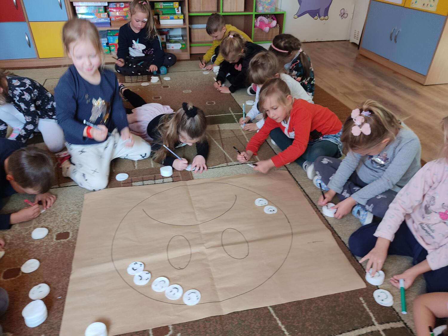 W grupie tropicieli realizuję program „Emocje pełne niespodzianek”. Wczorajsza niespodzianka – to taki zwykły , niezwykły uśmiech. Raczyliśmy się uśmiechami w zabawie plastycznej, szukając w szeregach właściwych kolorystycznie uśmiechów, słuchaliśmy śmiesznych wierszyków. Nawet stworzyliśmy własne , usmiechnięte rodzinki. I jak tu nie powiedziec ,że uśmiech to samo zdrowie.!!!S.L