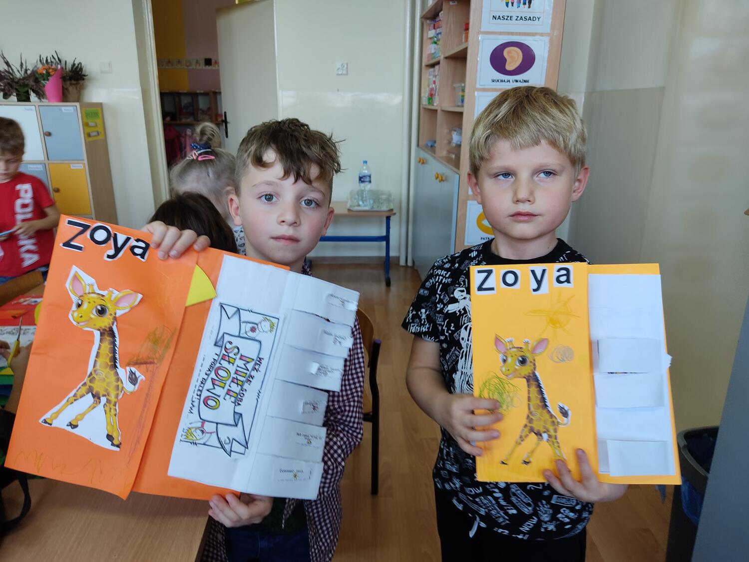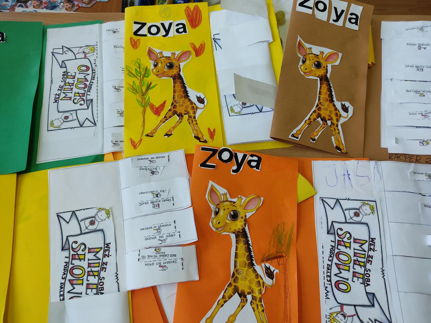 Żyrafa na stałe zagościła w komunikacji bez przemocy w bystrzakach. Ostatnio obiecaliśmy sobie,że zrobimy każdy z nas z osobna książkę o żyrafie Zoyi, udało się to dzisiaj, w czwartkowe popołudnie. Dzięki innej formie książki- lapbooka, takiej książki-składanki ,ciekawej i stwarzającej okazję do motywacji tworzenia czegoś zupełnie nowego. Każdy bystrzak stworzył  bardzo kreatywną i mądrą książkę o żyrafce, która uczy nas komunikacji , która polega na poszanowaniu uczuć i potrzeb własnych , jak również innych ludzi.Porozumienie bez Przemocy jest drogą empatii, drogą do piękniejszego życia, opartego na życzliwych relacjach z ludźmi. A tutaj autorzy książek przy pracy. Brawo dla wszystkich twórców.