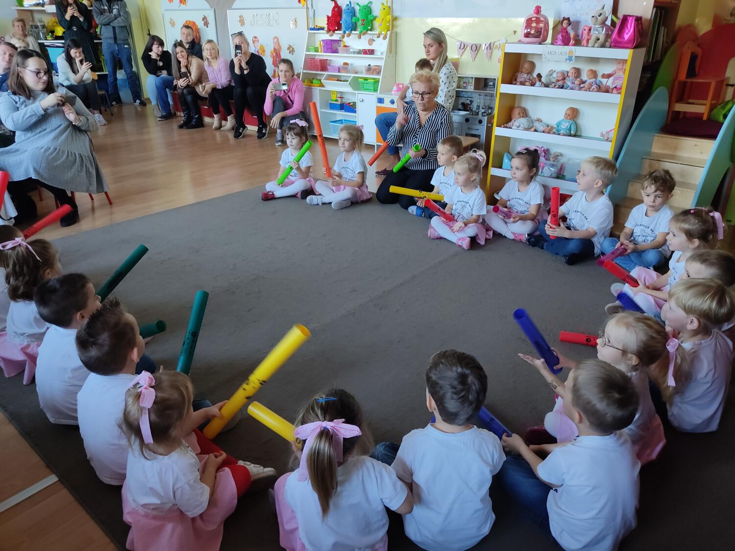 Pasowanie na przedszkolaka to ważny moment w życiu dziecka – zostaje przyjęte do przedszkolnej społeczności i staje się pełnoprawnym przedszkolakiem. Takie wydarzenie miało miejsce w dniu dzisiejszym tj.8.11.2022r , w najmłodszej grupie przedszkolnej -marzycielach.Było to pierwsze, arcyważne wydarzenie w życiu kazdego uczestnika- zarówno przedszkolaka , jak również rodziców i opiekunów.Dzieci miały możliwość wystąpić publicznie, w tańcu, piosence i w uroczystym pasowaniu , w trakcie którego magiczna kredka zrobiła to, co miała zrobić. Wszyscy doskonale się spisali- otrzymując pamiątkowe dyplomy i nagrody z okazji święta pasowania na przedszkolaka. Na koniec w miłym, rodzinnym klimacie miał miejsce słodki poczęstunek. Bardzo dziekujemy za tak liczne przybycie. Ogromne gratulacje dla naszych marzycieli!!