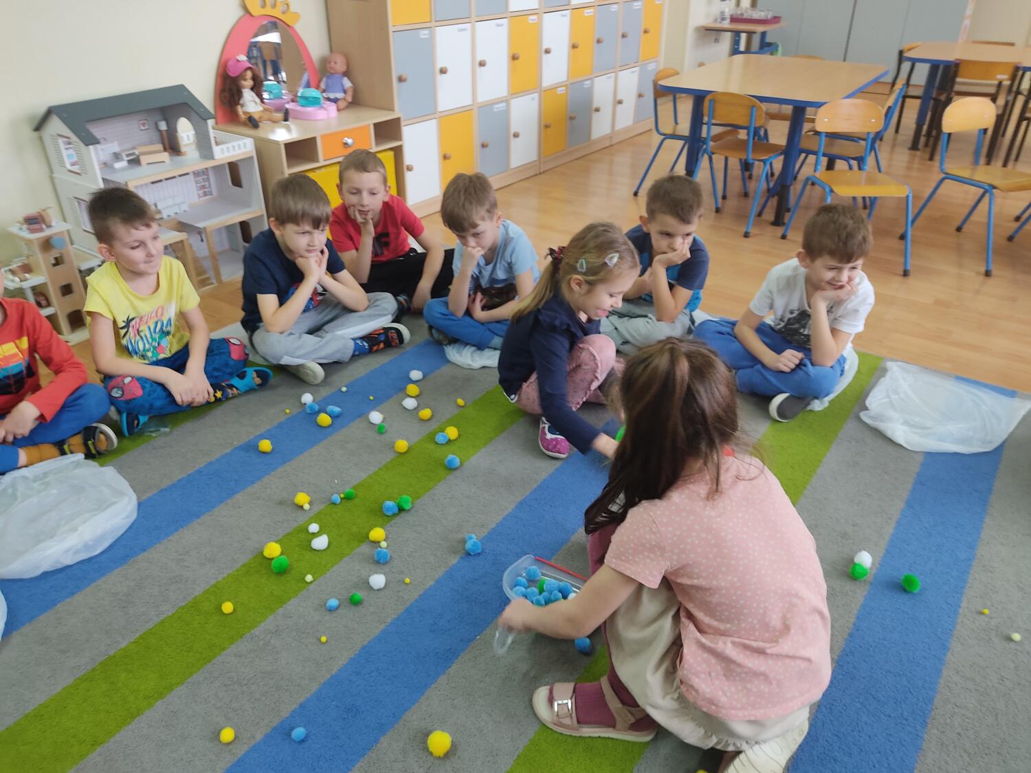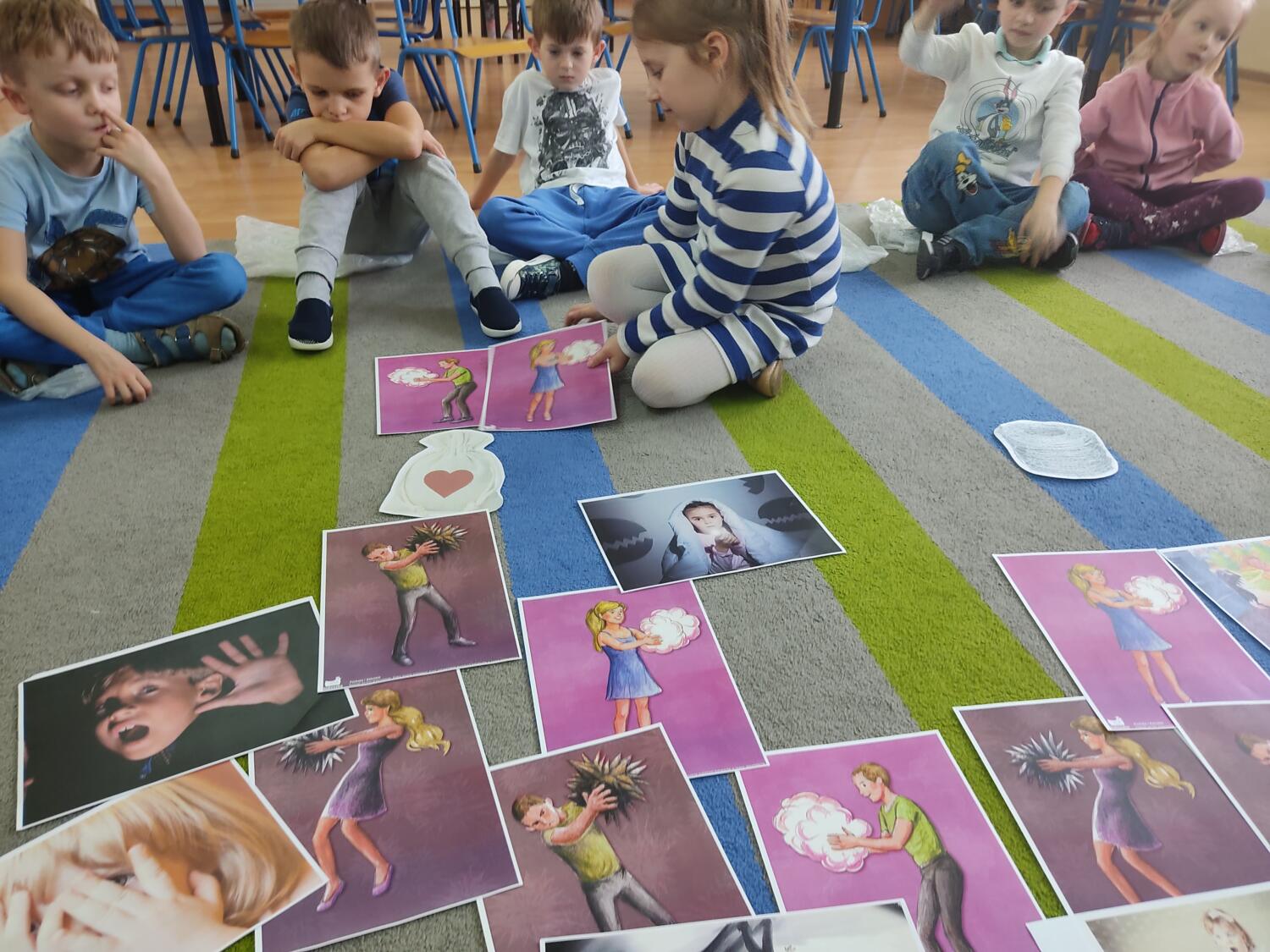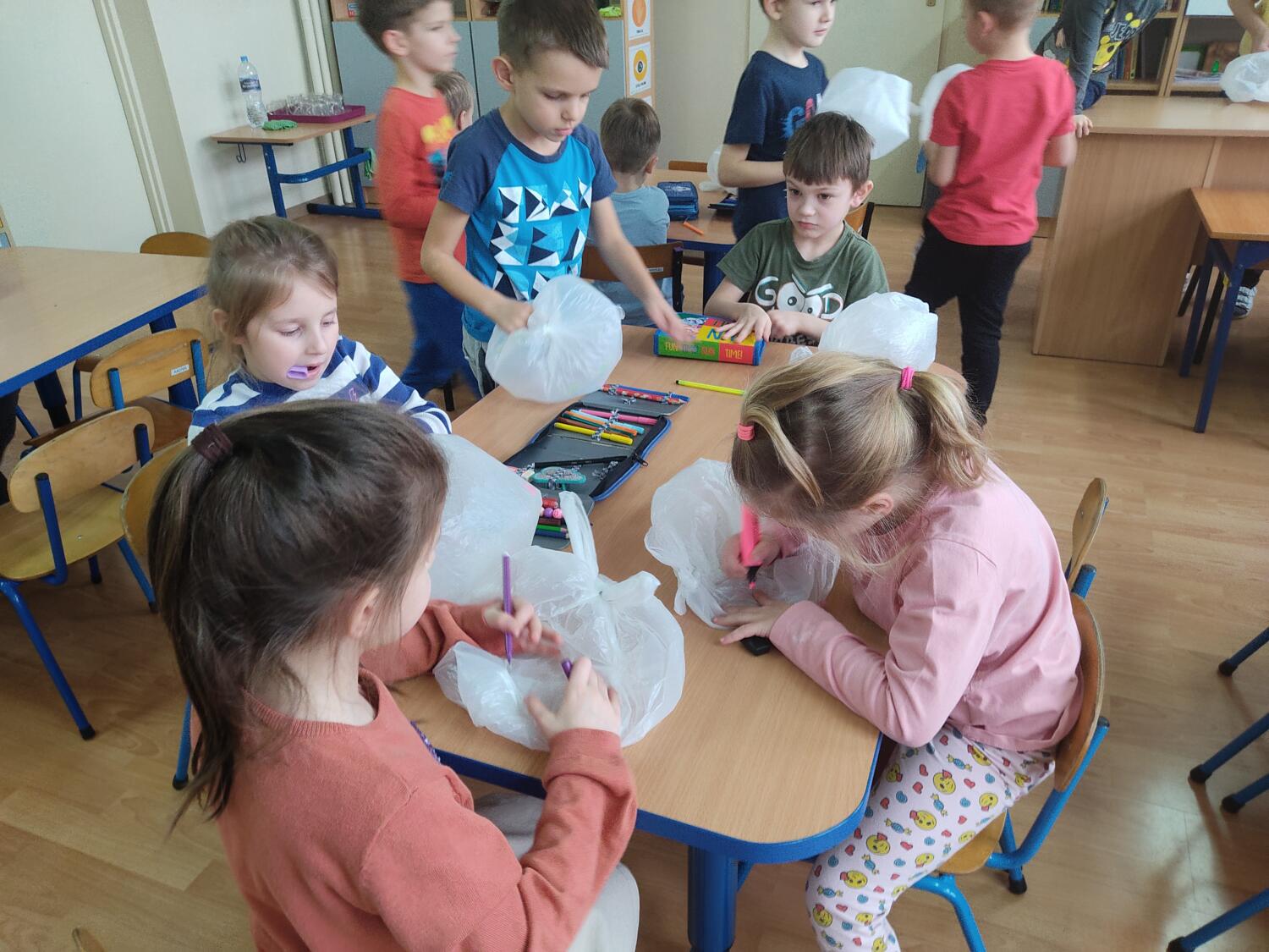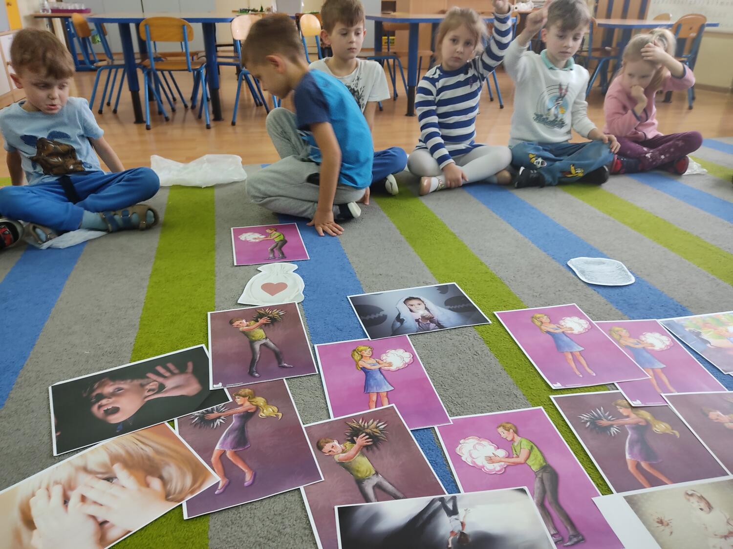 Zaprosiłam bystrzaków do krainy Uśmichowice- celem naszego spotkania było integrowanie całej grupy, wzajemnie okazywaliśmy sobie życzliwość i chęć przebywania razem, pracowaliśmy nad naszymi emocjami z wykorzystaniem bajki „Miękkie i puchate”, nazywaliśmy sytuacje budzące w nas różne uczucia i stany, oswajaliśmy emocje.Wzajemnie zastanawialismy się co to takiego jest miękkie, kolczaste. Udało nam sie zrobiś swoje własne puchate , by dalej nim się dzielić z innymi. Cały przebieg warsztatów przebiegł w ogromnym zaangażowaniu ze strony nas wszystkich, warto rozmawiać i bawić się z wykorzystaniem emocji.S.L