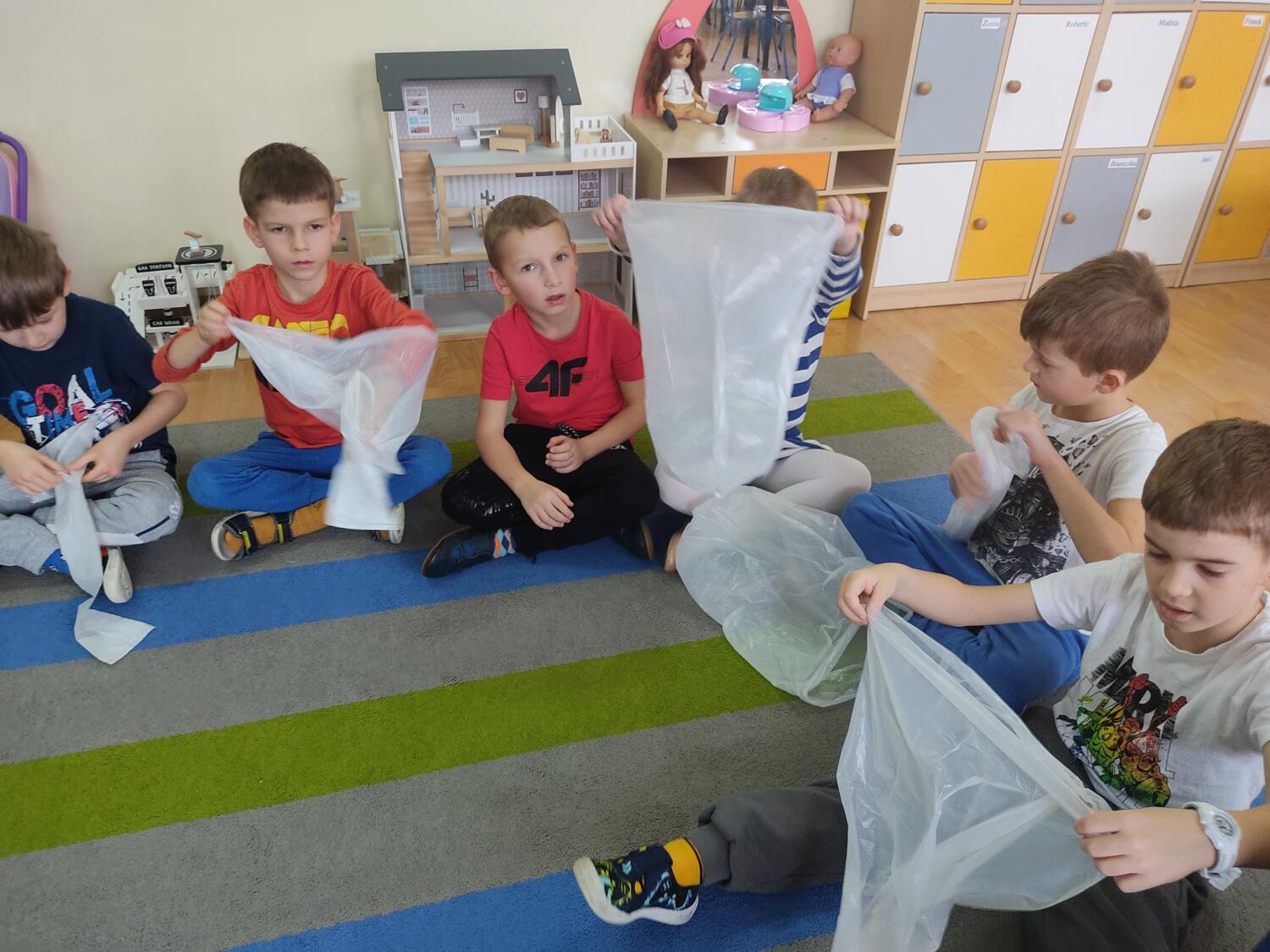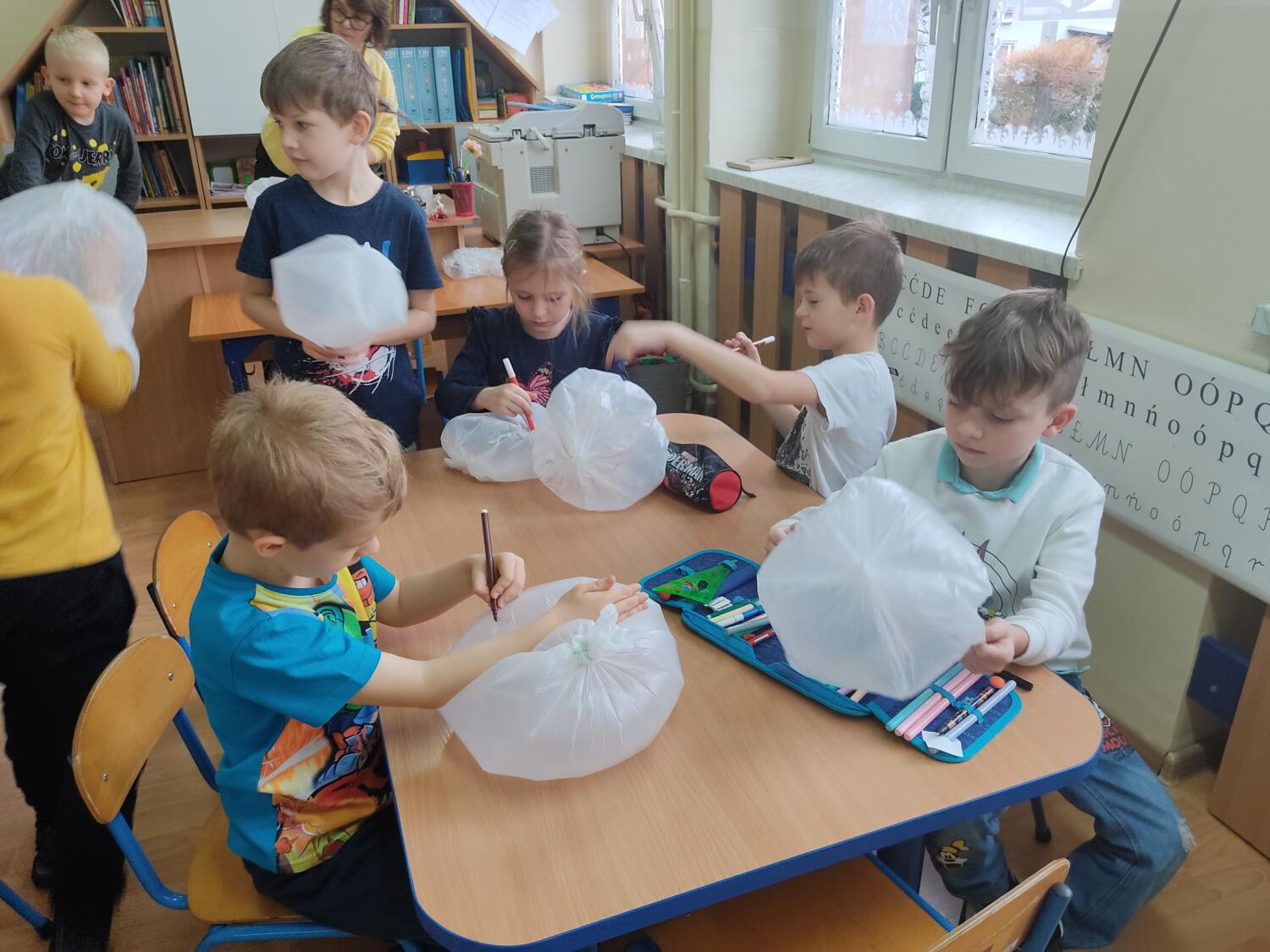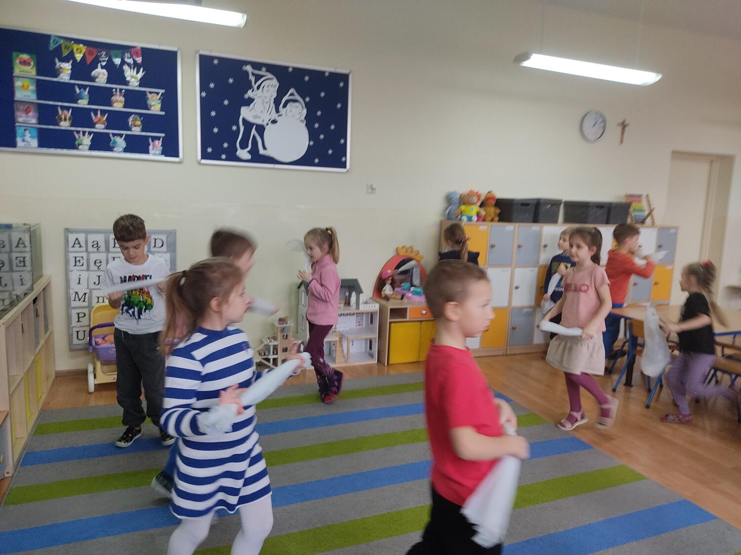 Zaprosiłam bystrzaków do krainy Uśmichowice- celem naszego spotkania było integrowanie całej grupy, wzajemnie okazywaliśmy sobie życzliwość i chęć przebywania razem, pracowaliśmy nad naszymi emocjami z wykorzystaniem bajki „Miękkie i puchate”, nazywaliśmy sytuacje budzące w nas różne uczucia i stany, oswajaliśmy emocje.Wzajemnie zastanawialismy się co to takiego jest miękkie, kolczaste. Udało nam sie zrobiś swoje własne puchate , by dalej nim się dzielić z innymi. Cały przebieg warsztatów przebiegł w ogromnym zaangażowaniu ze strony nas wszystkich, warto rozmawiać i bawić się z wykorzystaniem emocji.S.L