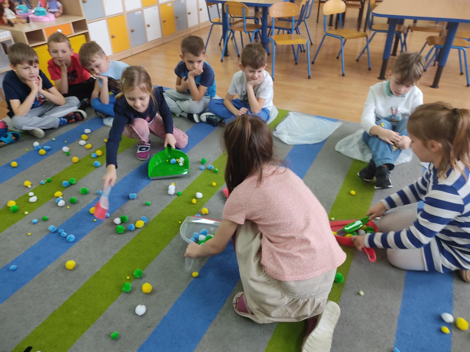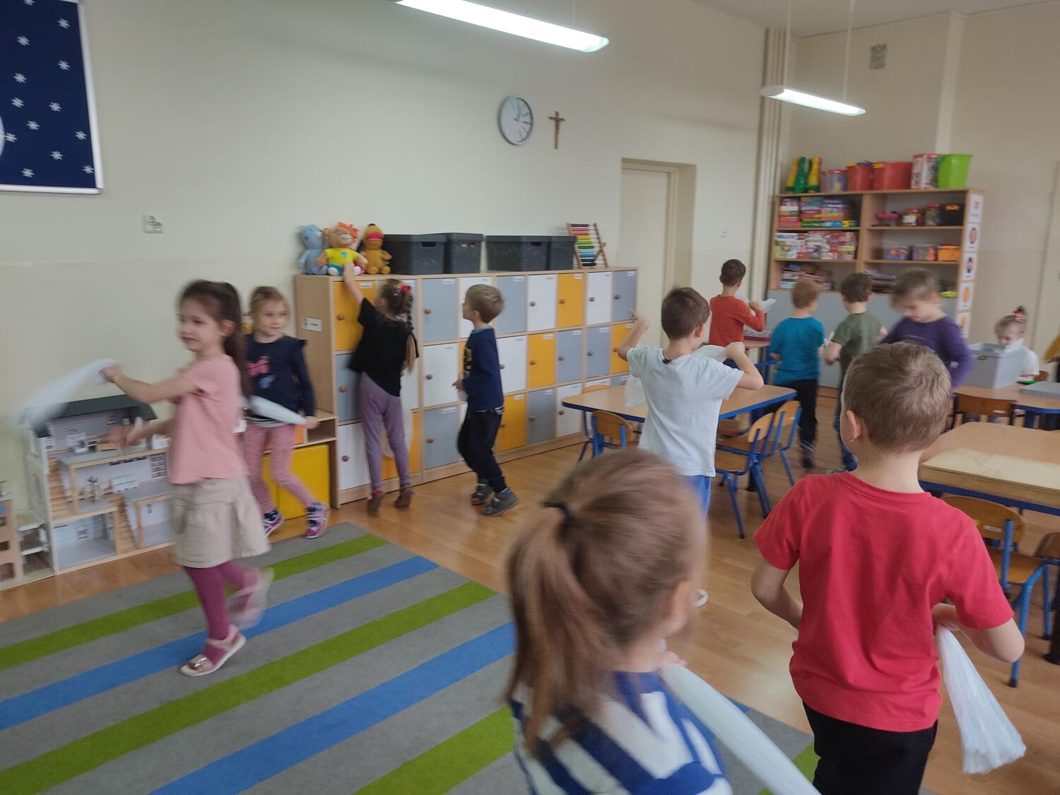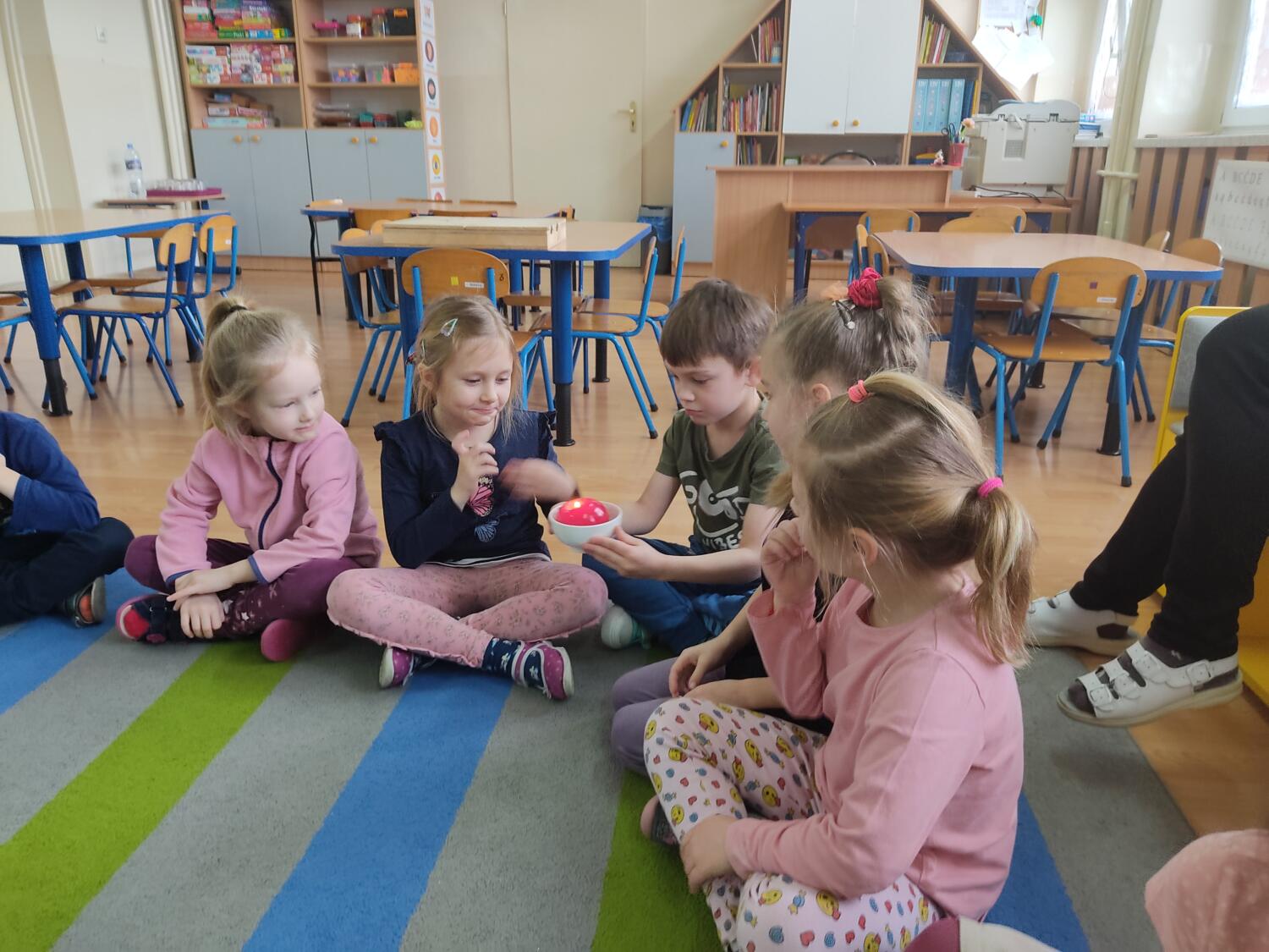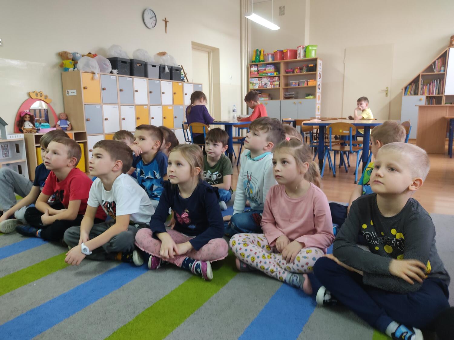 Zaprosiłam bystrzaków do krainy Uśmichowice- celem naszego spotkania było integrowanie całej grupy, wzajemnie okazywaliśmy sobie życzliwość i chęć przebywania razem, pracowaliśmy nad naszymi emocjami z wykorzystaniem bajki „Miękkie i puchate”, nazywaliśmy sytuacje budzące w nas różne uczucia i stany, oswajaliśmy emocje.Wzajemnie zastanawialismy się co to takiego jest miękkie, kolczaste. Udało nam sie zrobiś swoje własne puchate , by dalej nim się dzielić z innymi. Cały przebieg warsztatów przebiegł w ogromnym zaangażowaniu ze strony nas wszystkich, warto rozmawiać i bawić się z wykorzystaniem emocji.S.L