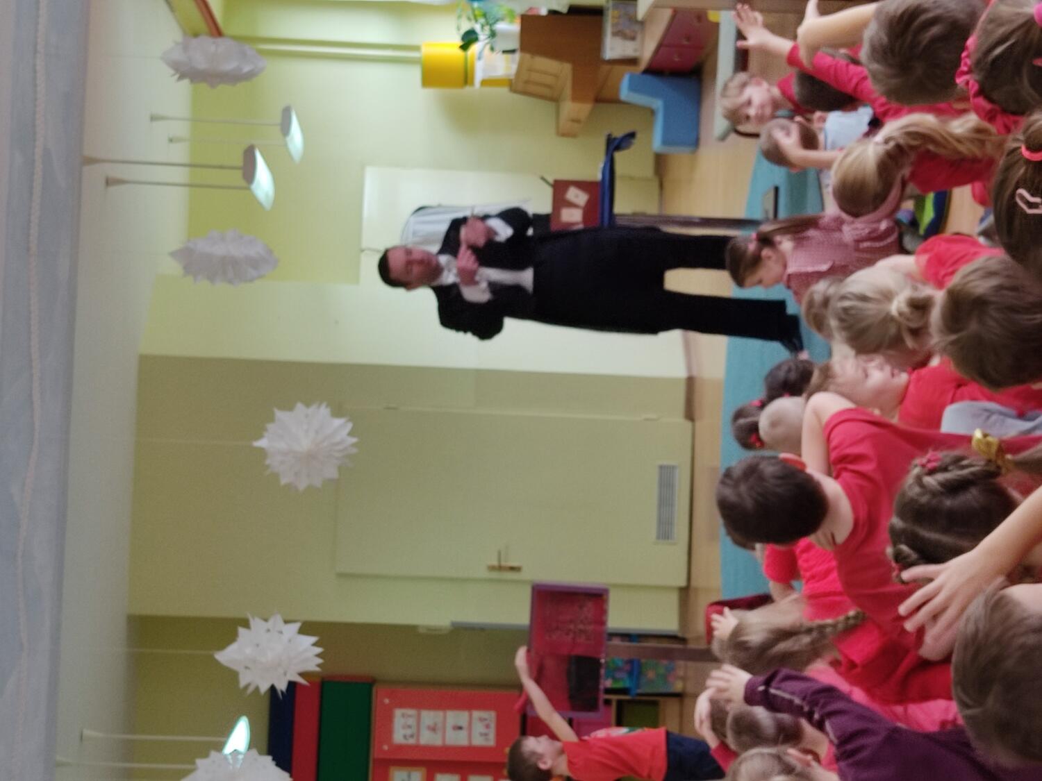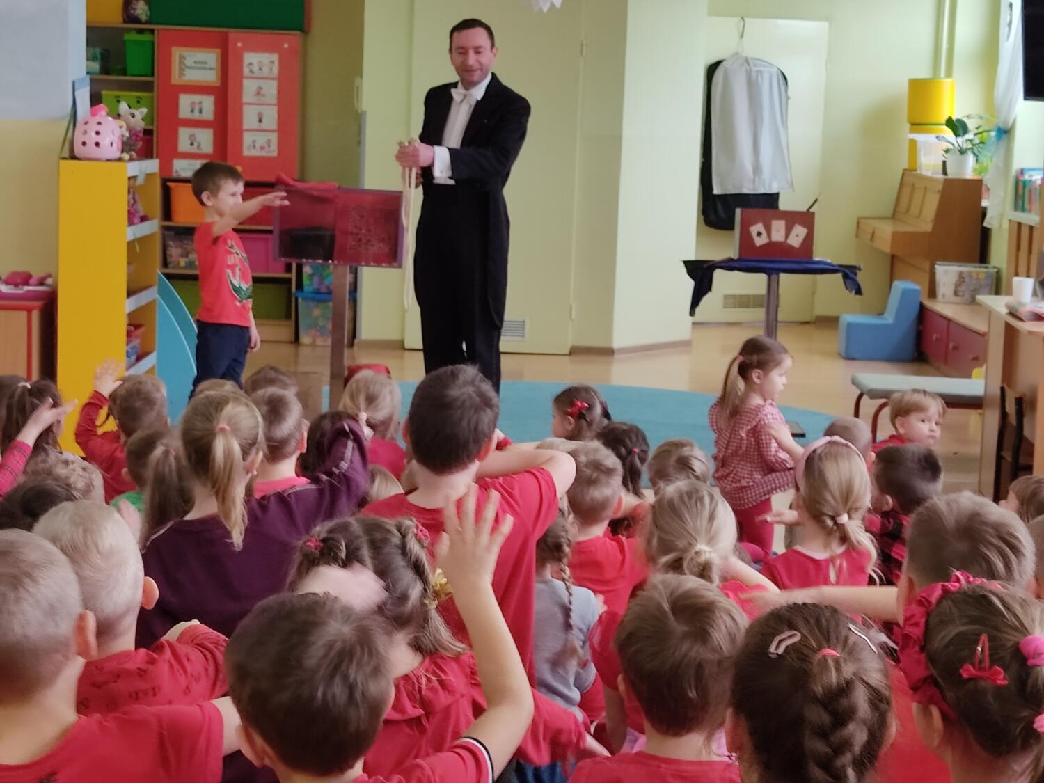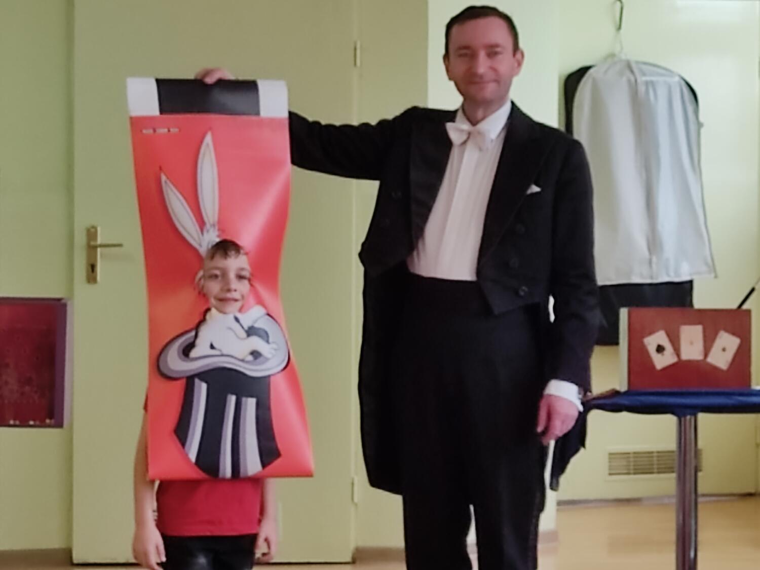 Trochę magii, trochę sztuczek, dużo wyobraźni i już… z kapelusza wyszedł królik. A wszystko to za sprawą iluzjonisty Mario, który odwiedził nas w przedszkolu. Wizyta ta odbyła się w dniu szczególnym , bo w Walentynki. Nasz iluzjonista Mario czarował publiczność przedszkolną wraz z nowo przybyłymi kandydatami do przedszkola, oj działo się. Czary mary,hokus pokus sim sala bim.A psik !!!!!??????. Dziekujemy Radzie Rodziców za ufundowanie tego magicznego widowiska.