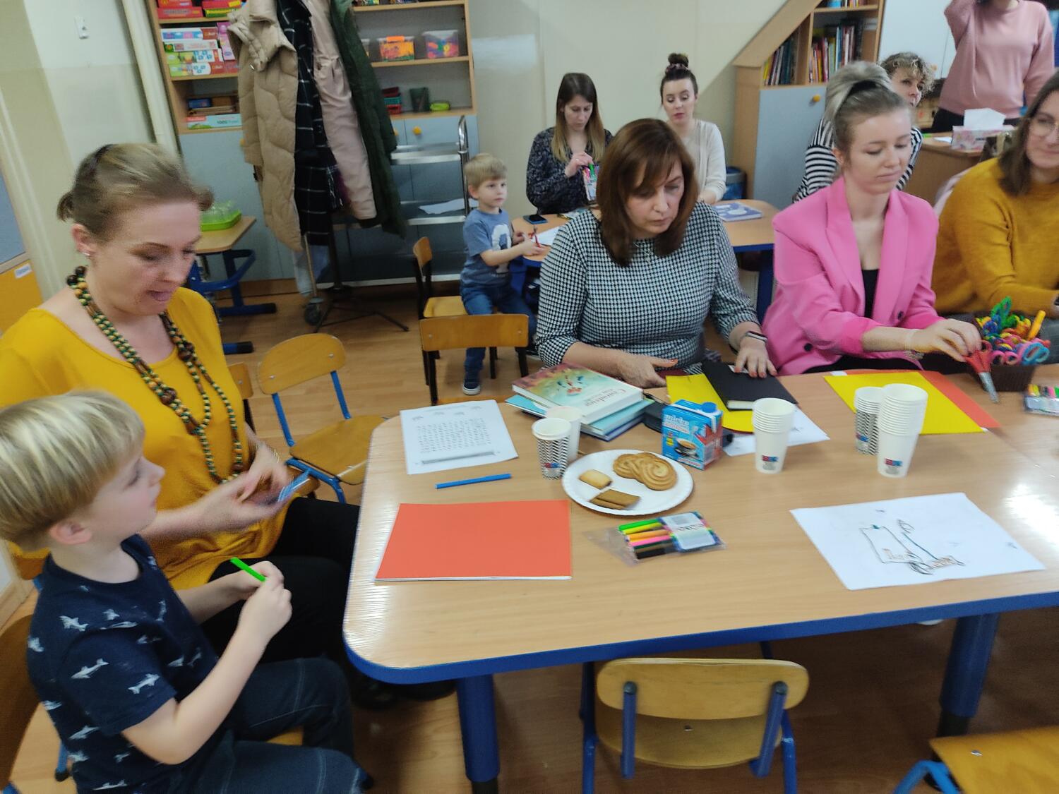 W dniu dzisiejszym odbył się warsztat ,na którym podano książki na receptę zarówno dla dorosłych i dzieci.Trochę było aktywności warsztatowej po obejrzanym spektaklu w teatrzyku kamishibai.W miłej i serdecznej atmosferze uczestnicy poznawali walory książek ,które nie tylko uczą, to propozycje , które pozwalają nam być przede wszystkim sobą.