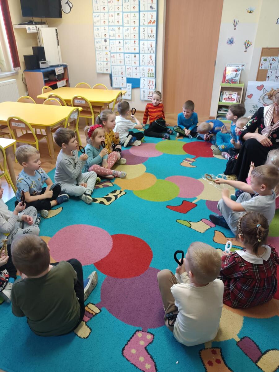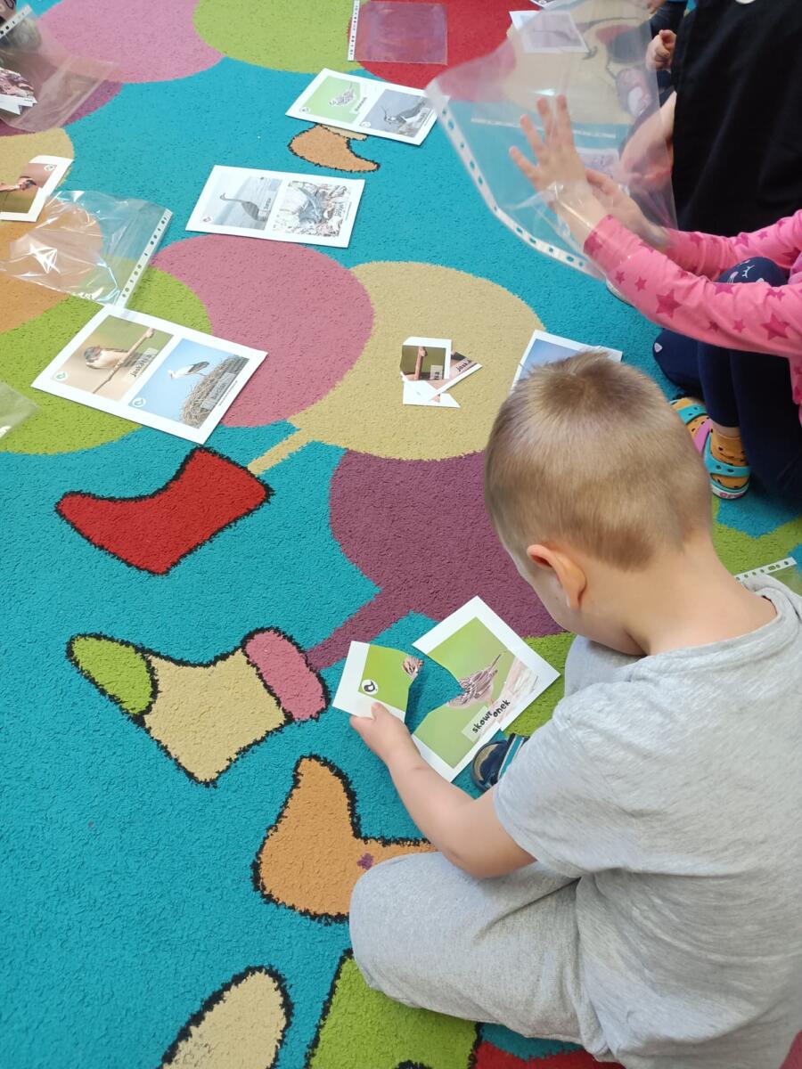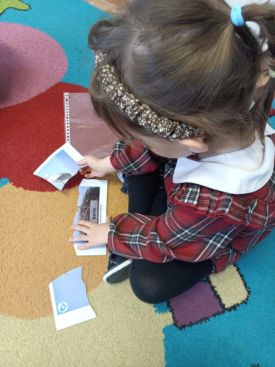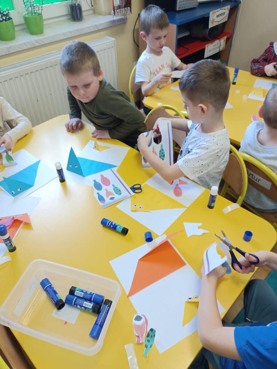 Odkrywcy bawili się w piątkowe do południe w obserwatorów przyrody, a konkretnie podglądali ptaszki. Ptaszki oczywiści miały bardzo dużo do powiedzenia, a szczególnie ten , który schowany był w kuferku i swoim ptasim ćwierkaniem rozdawał po kolei różne propozycje zabaw, ćwiczeń do wykonania – dzieci układały obrazki w całość z ptaszkami, nazywały ptaszki ,które przyleciały do Polski, robiły ptasie ślady na mokrym dywanie,spinały piórka klamerkami,wiły gniazdko z sensorycznego koca, a także ćwiczyły prawidłowy oddech z wykorzystaniem kolorowych piórek. Po wysłuchaniu książki „Paw bez ogona”- każdy zrobił swoje ptaki – cudaki z kolorowych trójkątów. Prace ptaków – cudaków są do obejrzenia na gazetce odkrywców.  A potem jeszcze było wyjście do biblioteki i spotkanie z Marcysią i jej ulubionym kotkiem.