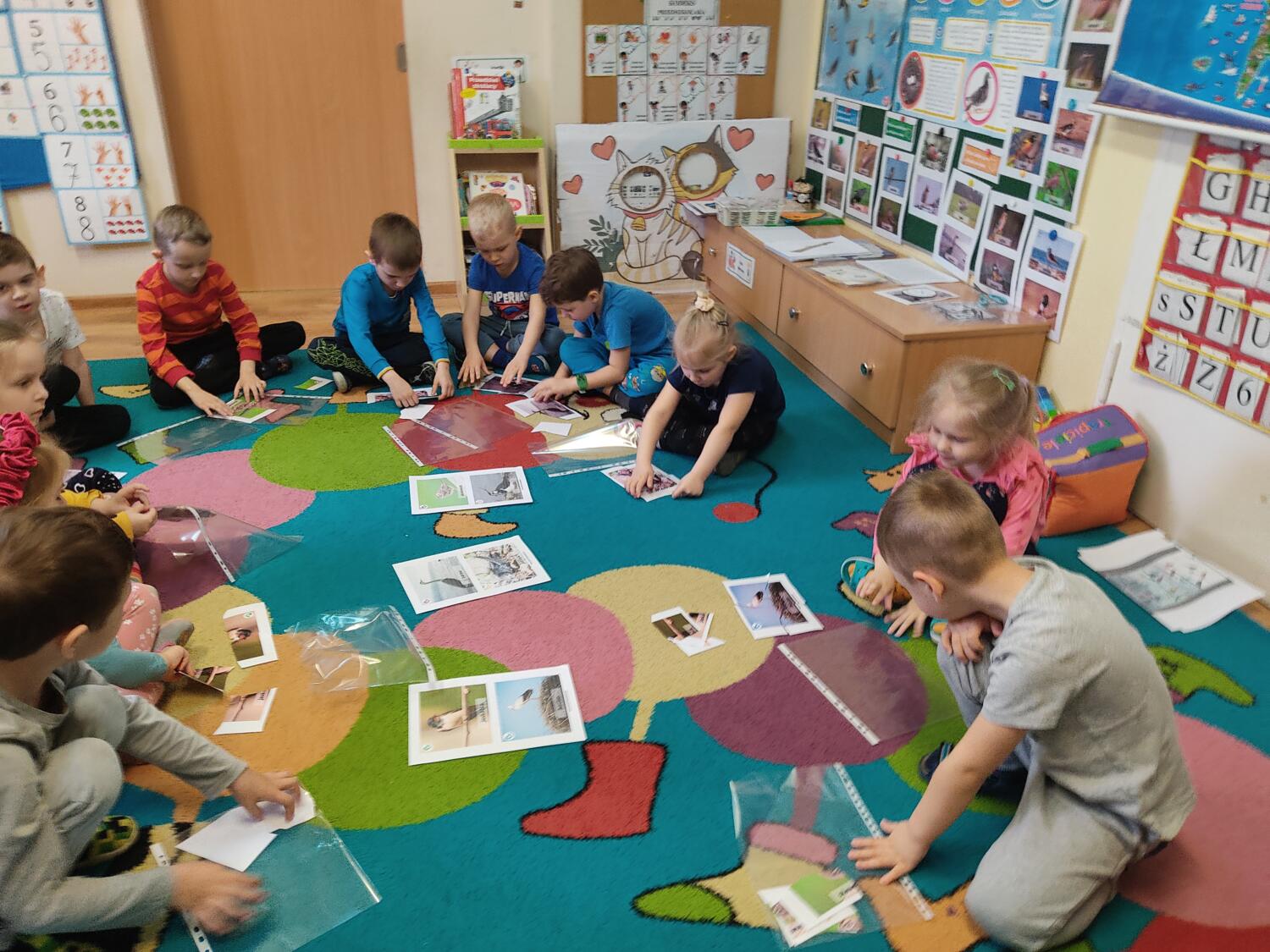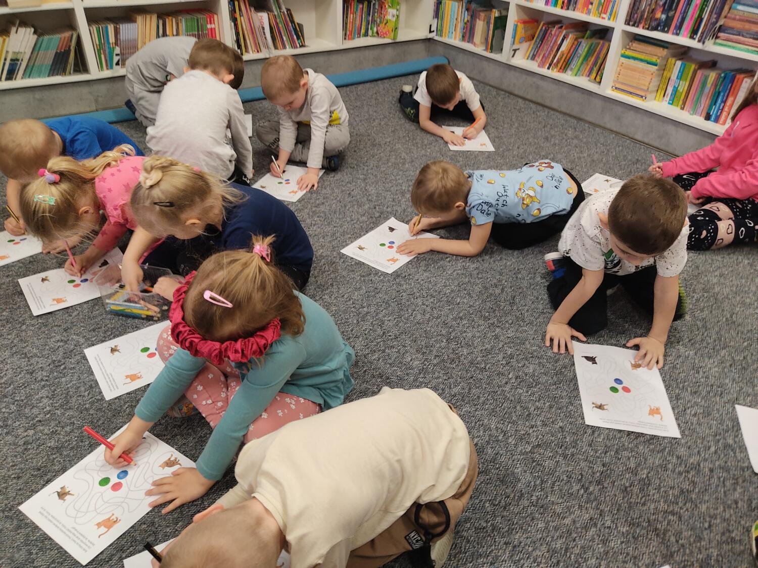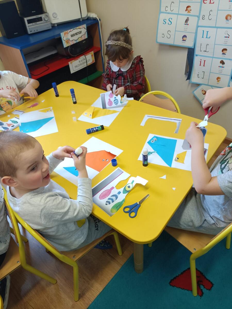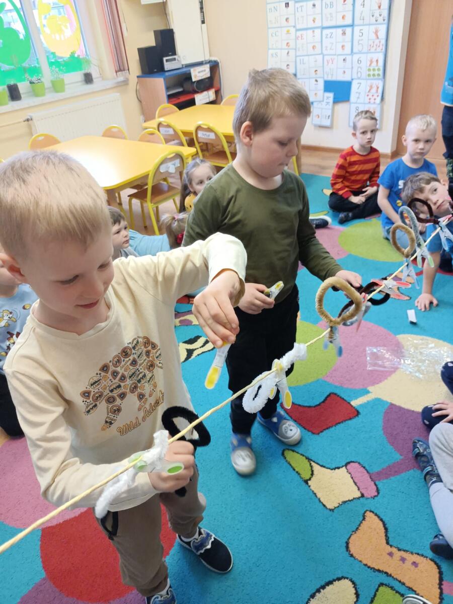 Odkrywcy bawili się w piątkowe do południe w obserwatorów przyrody, a konkretnie podglądali ptaszki. Ptaszki oczywiści miały bardzo dużo do powiedzenia, a szczególnie ten , który schowany był w kuferku i swoim ptasim ćwierkaniem rozdawał po kolei różne propozycje zabaw, ćwiczeń do wykonania – dzieci układały obrazki w całość z ptaszkami, nazywały ptaszki ,które przyleciały do Polski, robiły ptasie ślady na mokrym dywanie,spinały piórka klamerkami,wiły gniazdko z sensorycznego koca, a także ćwiczyły prawidłowy oddech z wykorzystaniem kolorowych piórek. Po wysłuchaniu książki „Paw bez ogona”- każdy zrobił swoje ptaki – cudaki z kolorowych trójkątów. Prace ptaków – cudaków są do obejrzenia na gazetce odkrywców.  A potem jeszcze było wyjście do biblioteki i spotkanie z Marcysią i jej ulubionym kotkiem.