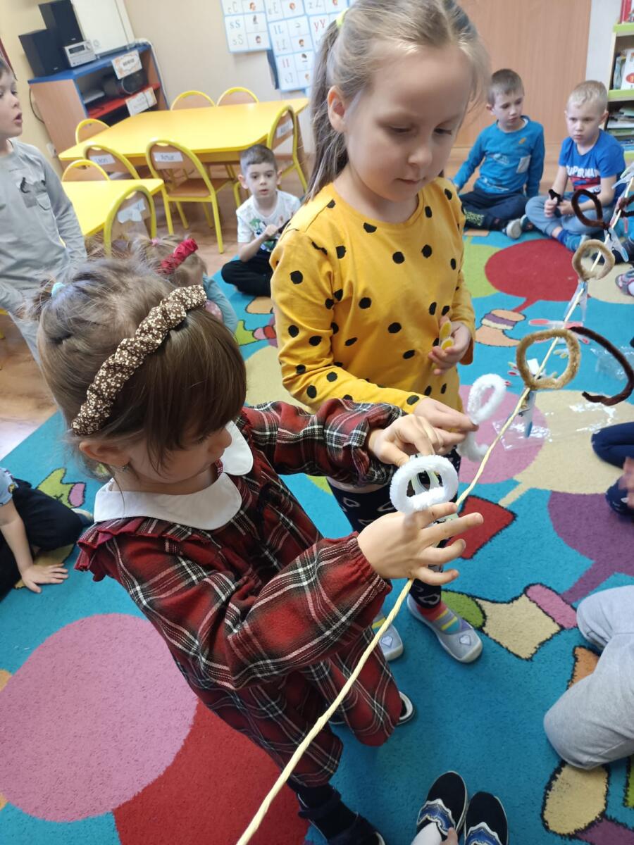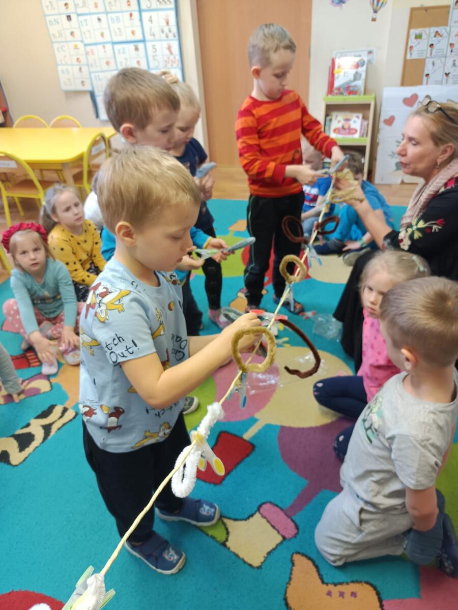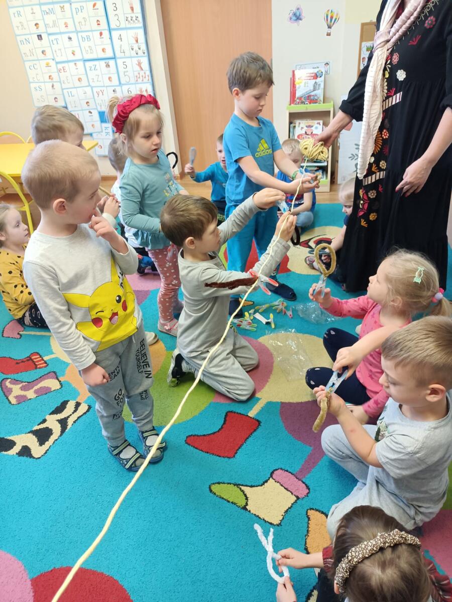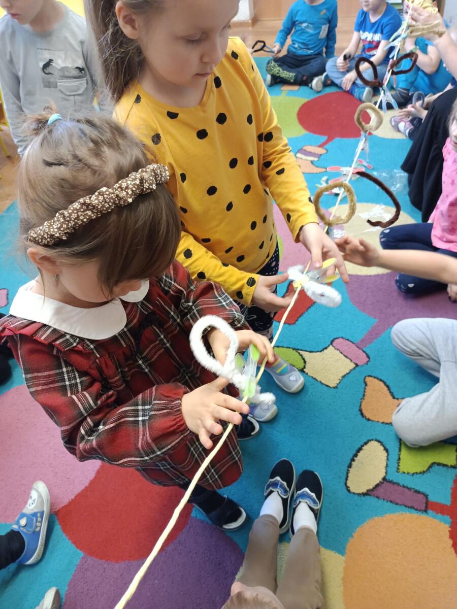 Odkrywcy bawili się w piątkowe do południe w obserwatorów przyrody, a konkretnie podglądali ptaszki. Ptaszki oczywiści miały bardzo dużo do powiedzenia, a szczególnie ten , który schowany był w kuferku i swoim ptasim ćwierkaniem rozdawał po kolei różne propozycje zabaw, ćwiczeń do wykonania – dzieci układały obrazki w całość z ptaszkami, nazywały ptaszki ,które przyleciały do Polski, robiły ptasie ślady na mokrym dywanie,spinały piórka klamerkami,wiły gniazdko z sensorycznego koca, a także ćwiczyły prawidłowy oddech z wykorzystaniem kolorowych piórek. Po wysłuchaniu książki „Paw bez ogona”- każdy zrobił swoje ptaki – cudaki z kolorowych trójkątów. Prace ptaków – cudaków są do obejrzenia na gazetce odkrywców.  A potem jeszcze było wyjście do biblioteki i spotkanie z Marcysią i jej ulubionym kotkiem.