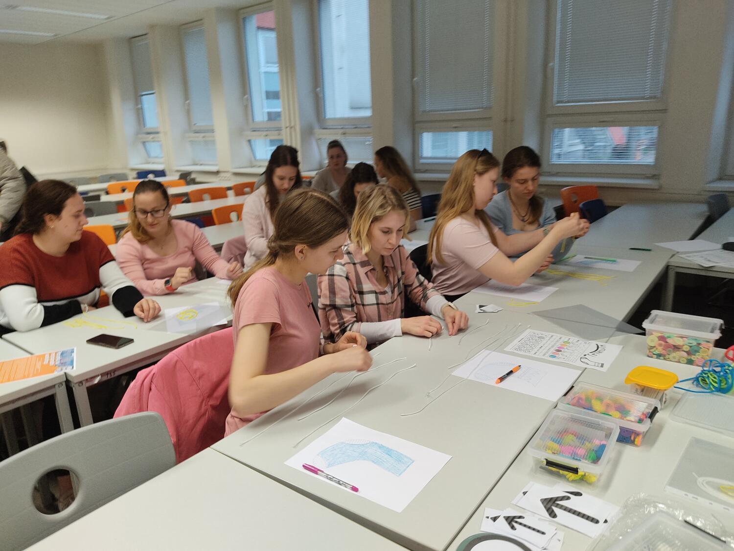 Dzięki współpracy z Akademią Nauk Stosowanych w Raciborzu zostałyśmy zaproszone na Uniwersytet w Ostrawie do przeszkolenia studentek w Czechach.To kolejne nasze szkoleniowe spotkanie w Czechach. Cieszymy się ,że nasze doświadczenie, nasza praca jest doceniana za granicą i tak bardzo cieszy nas entuzjazm z jakim studentki podeszły do warsztatów , które wspólnie prowadziłam z Panią Patrycją. Dumna jestem ,że wspieramy, inspirujemy, dzielimy się naszym doświadczeniem z koleżankami zza miedzy. Zaskoczyła nas ogromna liczba studentek- w trzech turach bawiliśmy się matematycznie , bowiem tematem wiodącym naszych warsztatów było kodowanie na dywanie.
