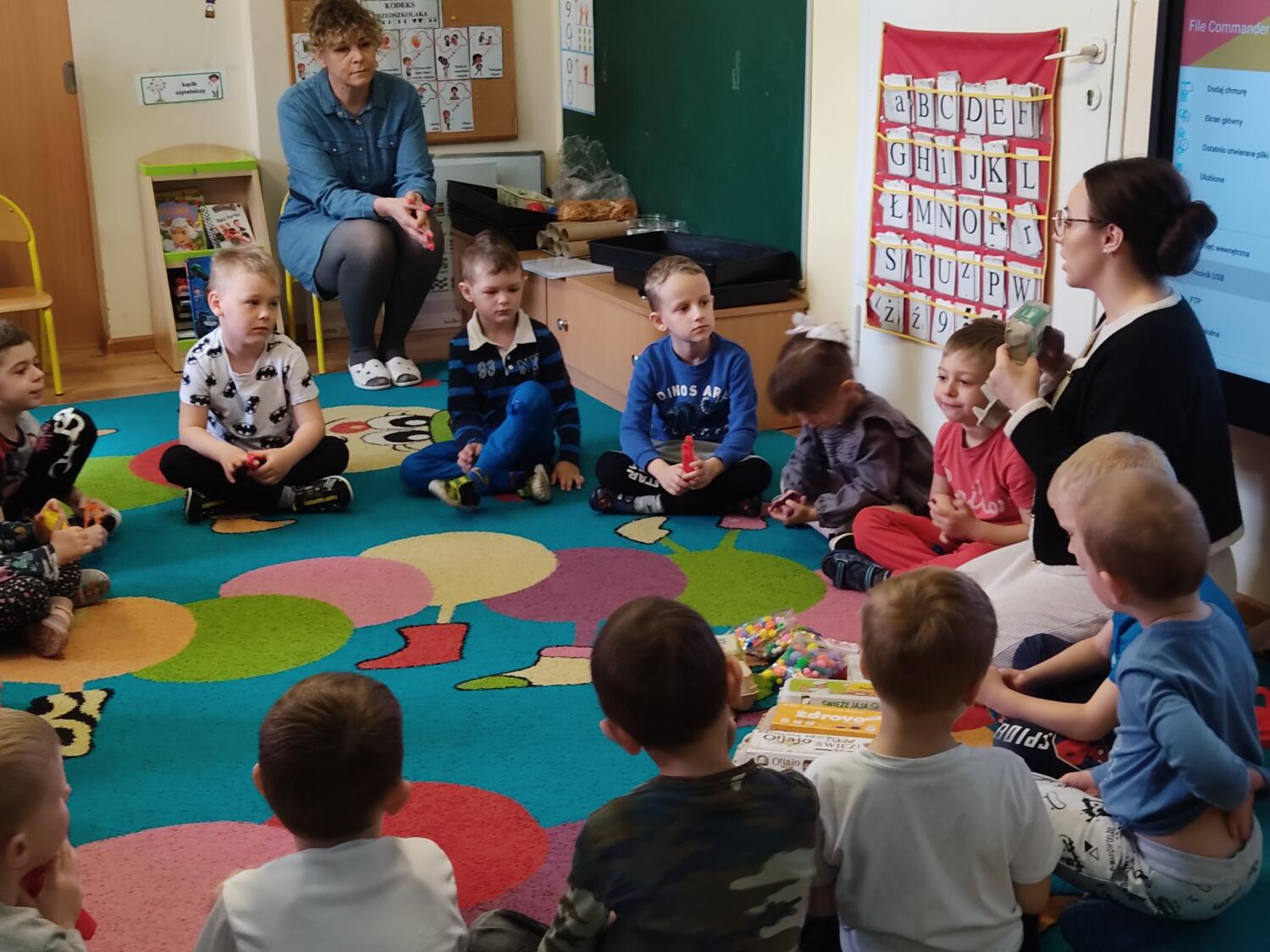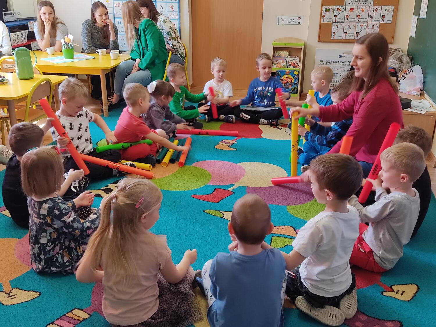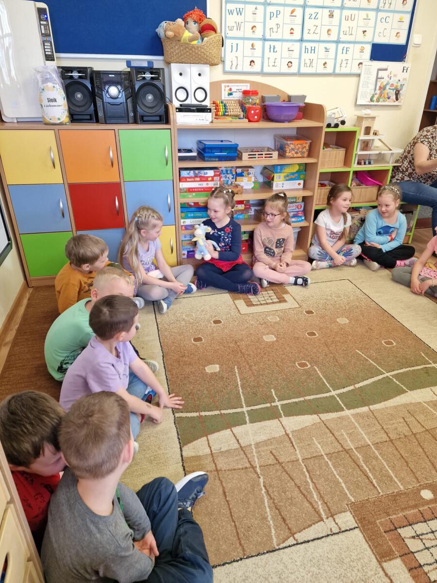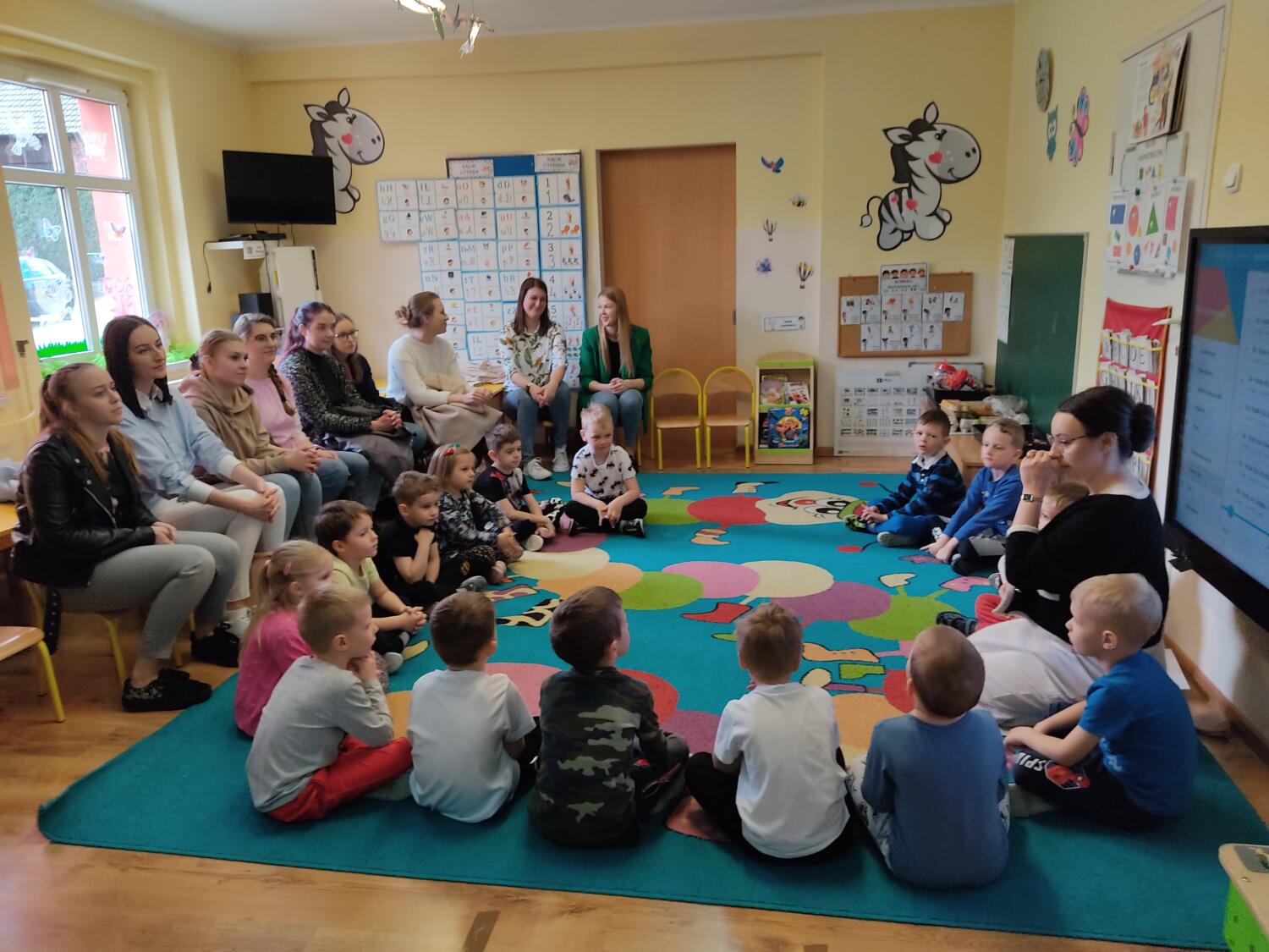 Dzisiaj sale tropicieli i bystrzaków wypełnili goście z Akademii Nauk Stosowanych w Raciborzu, z opiekunem Panią dr Kornelią Solich .Uczestniczki – studentki miały okazję zobaczyć w praktyce nasze działania innowacyjne realizujące w grupach. Tak więc ,najpierw duża dawka terapii ręki , potem zajęcia TUS z elementami bibliterapii , by zakończyć Batti Strauss-aktywne słuchanie muzyki. Na samym końcu studentki wysłuchały wykładu „Półka pełna myśli”, która to prezentacja miała dać zgromadzonym Paniom wiedzę, do jakiej literatury należy sięgać ,by stać się empatycznym i dobrym przede wszystkim człowiekiem. Dziękuję moim młodszym koleżankom , które poprowadziły terapię ręki- Pani Patrycji, a aktywne słuchanie B. Strauss  zrealizowała dzisiaj Pani Sonia.Dziękuję naszym dzieciom, które były bardzo odważne, dały się poznać jako bardzo aktywne, chętne do działania, próbowania i dzielenia się swoimi wrażeniami. BRAWO!!