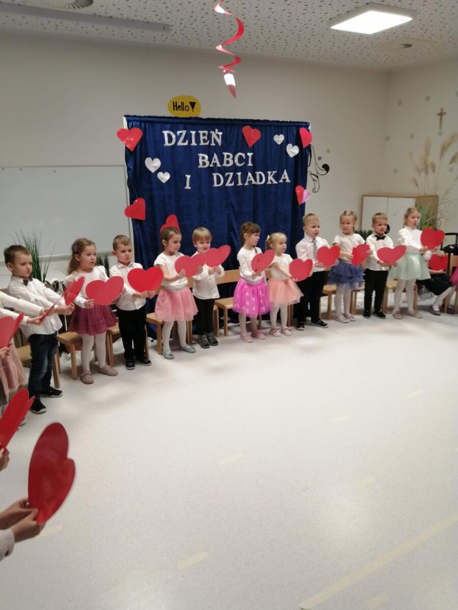W dniu 26.01.2024r. przedszkole było przepełnione dziecięcymi piosenkami, tańcami i wierszykami, które były skierowane dla wyjątkowych gości – Babć i Dziadków.