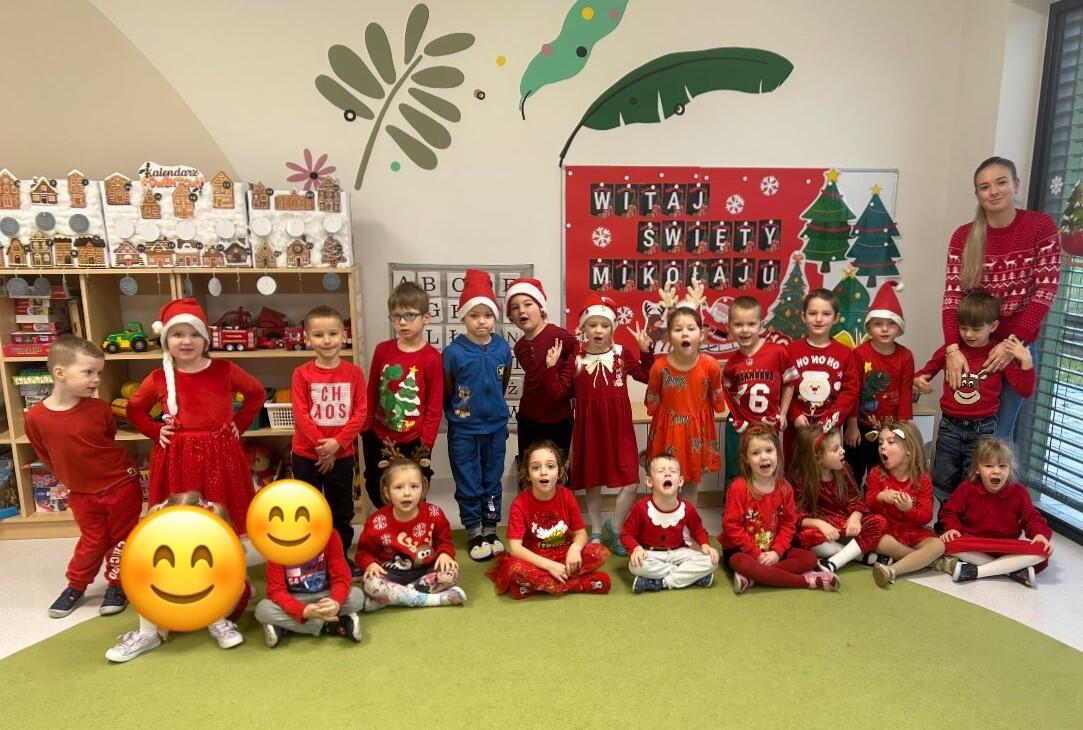 Serdecznie dziękujemy Świętemu Mikołajowi i jego pomocnikowi – Elfowi za odwiedziny, uśmiech i prezenty, które sprawiły dzieciom ogromną radość. Składamy również gorące podziękowania Paniom z kuchni, które przybyły do nas z upominkami i wprowadziły dodatkową porcję świątecznej atmosfery.